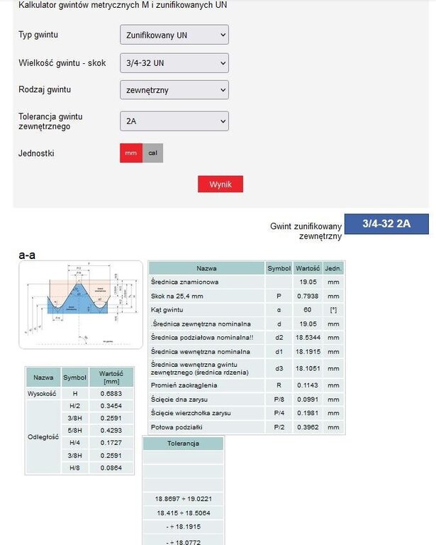 Kolego zmierz dokładnie albo grzebieniem, albo za pomocą suwmiarki... podziałka na podkładce nie musi być dokładna.. Standaryzowanego gwintu bardzo drobnozwojnego UNEF 3/4-32 nie ma, chyba, że to gwint niestandardowy(autorski) np producenta owej rzeczy, ale to rzadkość.... https://mikromierz.pl/wymiary-gwintow-calowych-UNEF-wedlug-normy-ANSI-B1-1 https://darmet.com.pl/pl/blog-techniczny-darmet/2189-gwint-calowy-jest-ich-wiele-czy-tylko-jeden Może wg podanych wymiarów to być natomiast gwint zunifikowany (o skoku uprzywilejowanym) 3/4-32 UN https://artykulytechniczne.pl/blog/kalkulator-gwintow/ a-a Narzynka https://allegro.pl/oferta/nowa-narzynka-toolmex-3-4-32-un-hss-10187779899?utm_feed=aa34192d-eee2-4419-9a9a-de66b9dfae24&utm_term=desc-yes&utm_source=google&utm_medium=cpc&utm_campaign=_dio_przemysl_pla_ss&ev_adgr=przemysl&ev_campaign_id=14937753754&gclid=CjwKCAiAprGRBhBgEiwANJEY7Kmj7RASJBGCIj5-zeWY854c1Hli_EAaxusNb2l4O6mP-LYvI5DCnhoCIeYQAvD_BwE