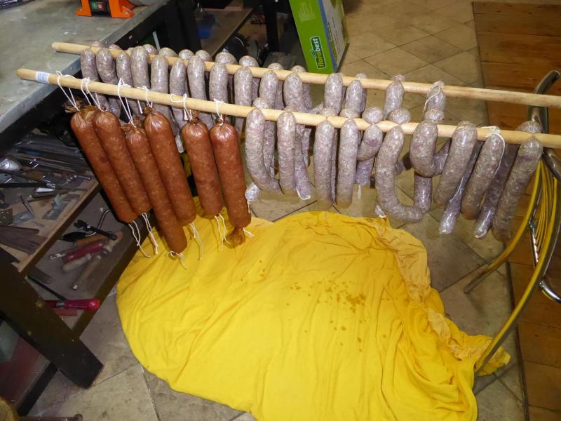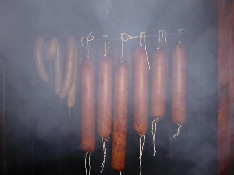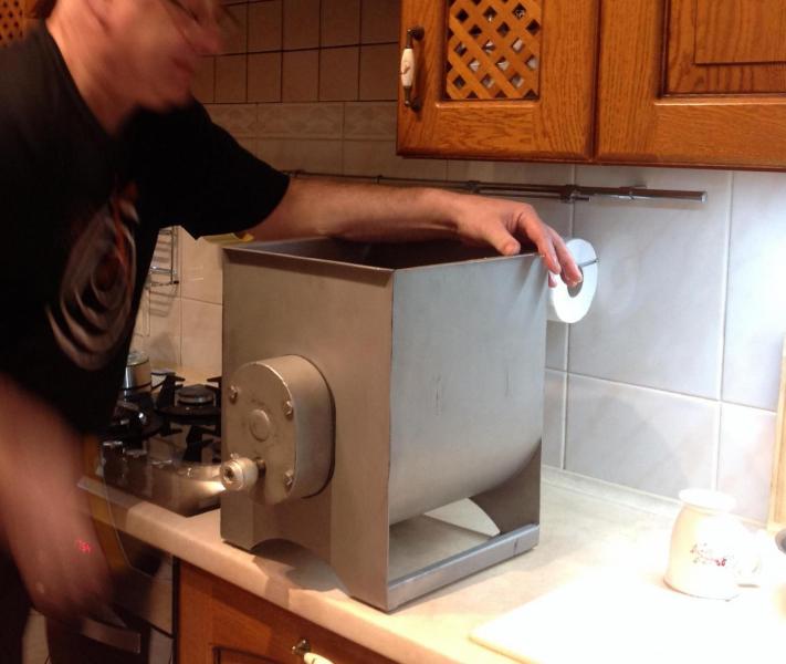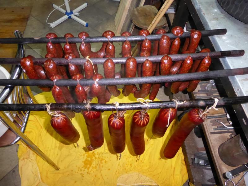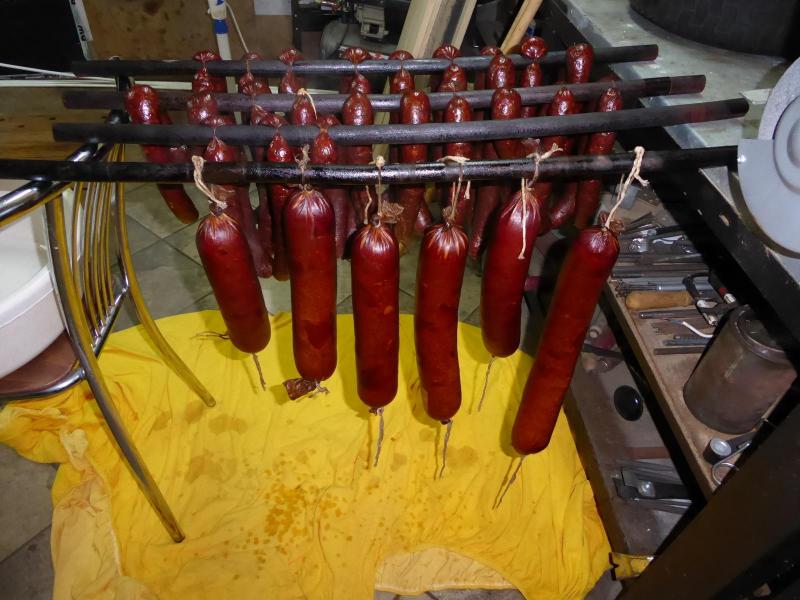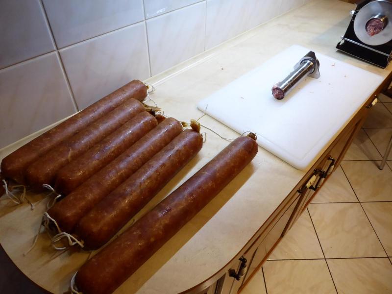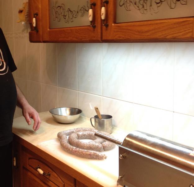 16. Do jutrzejszego wędzenia... Urabianie składników nabijanie kiełbas nabijanie szynkowej powisi sobie do jutra aby obeschnąć przed wędzeniem (wędzenie mokrych wędlin czy ryb sprawia, że są bardzo ciemne, oblepione składnikami dymu) A do tego jeszcze świeży chlebek...
