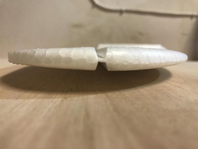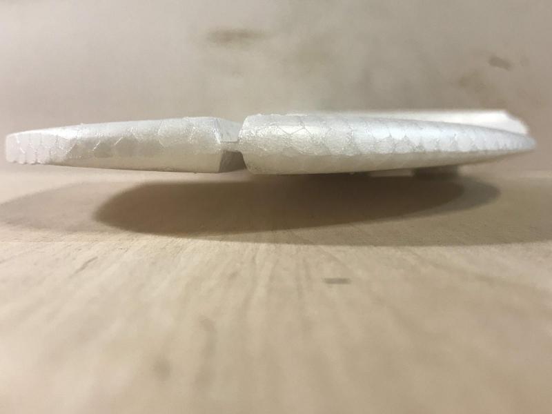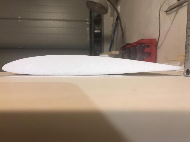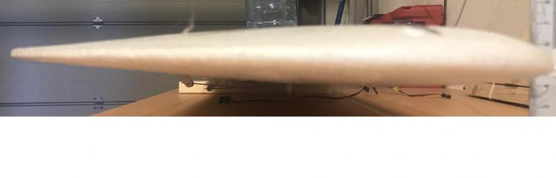 Dla świętego spokoju - to co podaję odnośnie profilu Fun Cub firmy MPX to tylko celem edukacji, nic ponad to. Ciąg dalszy informacji w pliku w skali 1 do 1: skan przekroju.pdf fotki grubości profilu co jeden cm od krawędzi natarcia: Widok na cały przekrój: Władku dla ciebie ten widoczek 83 mm od krawędzi natarcia: Następnie pogląd na sprawcę zamieszania czyli przekrojony płat: i widoczek na przetłoczenia górnej części płata na zakończenie jako ciekawostka widoczek na statecznik poziomy