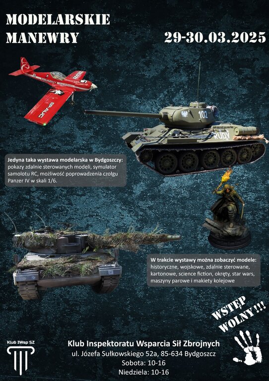 Jeszcze mała fotorelacja z Manewrów Modelarskich które odbyły się 29 - 30.04.2025r. w Klubie Inspektoratu Wsparcia Sił Zbrojnych na ul. Sułkowskiego 52 w Bydgoszczy (dawny klub POW).Fajnie było !! 😁🤩 Jeszcze kilka fotek z wystawy !😁
