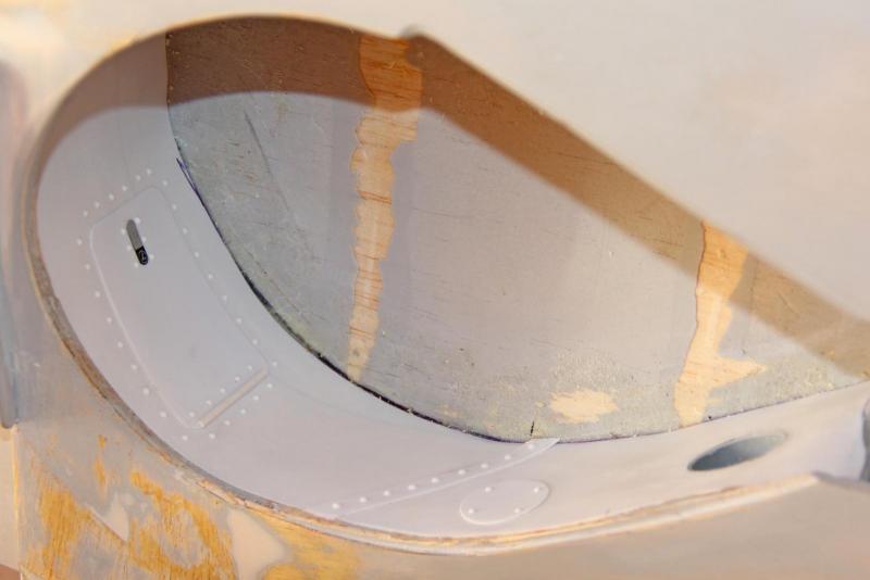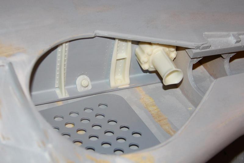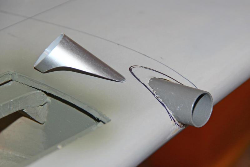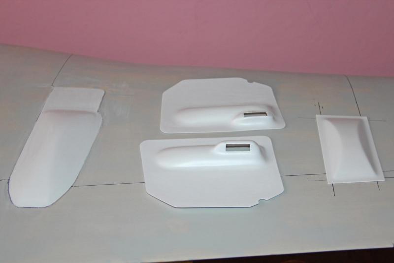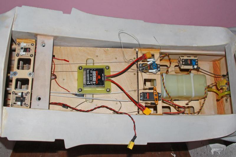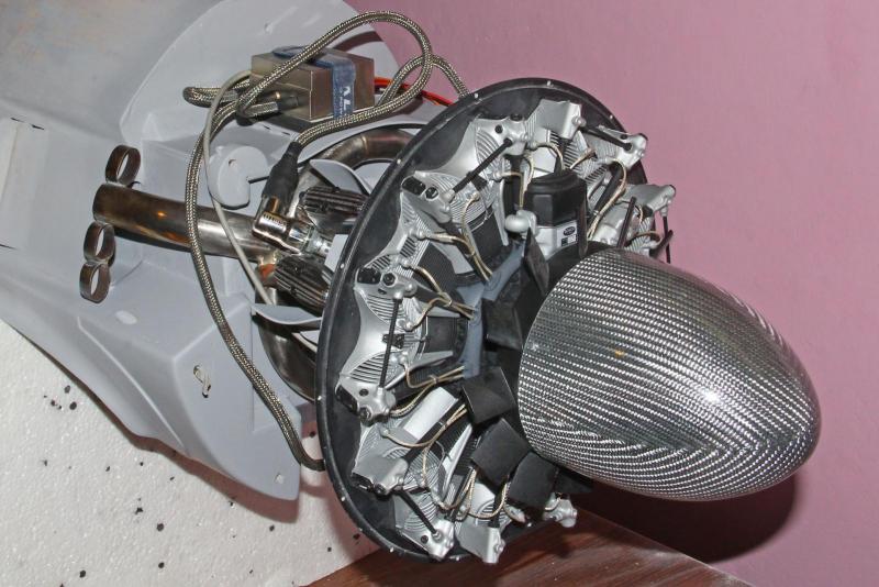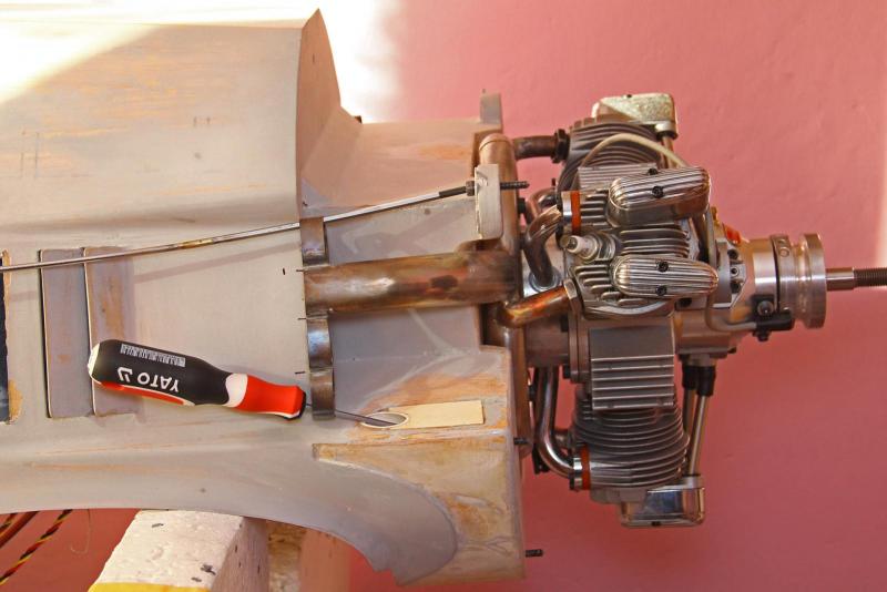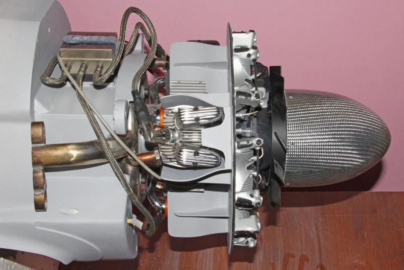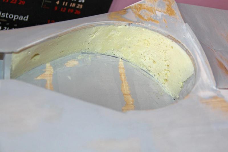 Jeszcze nie odpalałem silnika z tym tłumikiem, byłem zajęty pracą zawodową, poza tym muszę najpierw zamontować serwo gazu, półki pod pakiety i zbiornik, następnie zabezpieczyć podkładem przedział silnika i zbiornika. Co do chłodzenia silnika, to jak wykonam testy to się okaże czy chłodzenie jest wystarczające, zawsze mogę wyciąć większe otwory w atrapie silnika, ale myślę że będzie dobrze i wentylator dostarczy odpowiednią ilość powietrza, najważniejsze jest odpowiednie ukierunkowanie przepływu powietrza na cylindry.