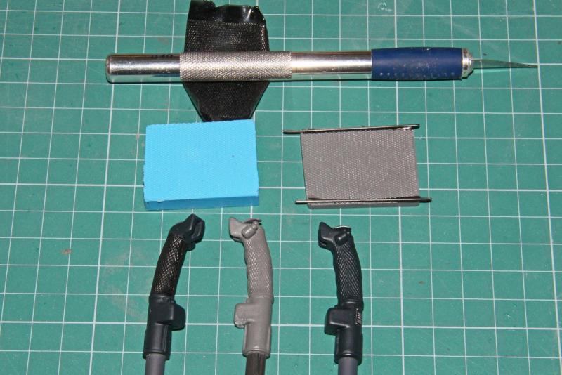 Myślę, że z tego zestawu można uzyskać odpowiedni kolor, ale pamiętaj tak jak wcześniej napisałem Plasti Dip nie nadaje się do odlewów, można nim pokryć gotowe gogle tak by wyglądały na gumowe. Budowy modelu nie przerwałem praca zawodowa mnie spowalnia, ostatnio wykonałem końcówki luf karabinów.