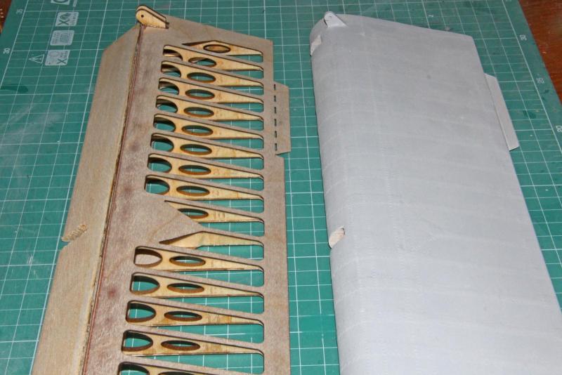 Tak, zastosowałbym metodę podobną jak do wykonania liter na oponie, wykonać kopyto, formę negatywową, następnie cały model laminować. Można też wylaminować w formie tylko samą blachę falistą z cienkiego laminatu i przykleić do balsowego modelu. Zdjęcie przedstawia blachę drobnofalistą Puławskiego, Wibault jest trochę inny. http://www.pwm.org.pl/viewtopic.php?f=3&t=79337