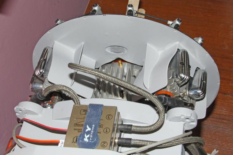 Panie Piotrze zdjęcie samej atrapy nic nie da, zbyt duża ilość powietrza będzie wchodzić niż wychodzić i jestem pewien że silnik by się przegrzewał, a ja chcę sprawdzić skuteczność chłodzenia z zamontowaną atrapą silnika. Akumulator mam podobnie zamocowany w spitfire, model lata pięć sezonów i nic się nie dzieje. Łukasz, zgadzam się z tym co napisałeś, wiem że te szczeliny w atrapie będą zakłócać przepływ powietrza, ale jaki to będzie miało wpływ na chłodzenie silnika to sprawdzę tylko doświadczalnie i tak jak już pisałem wcześniej gdyby się okazało, że chłodzenie jest niewystarczające to wytnę w atrapie imitację żeber cylindra. Telemetria oczywiście będzie podłączona, wspomniałem o tym przy rurce Pitota, w spektrum nie ma chyba możliwości podłączenia trzech czujników temperatury, więc podłączę jeden do najcieplejszego cylindra, może wiesz jaka jest dopuszczalna maksymalna temperatura silnika?