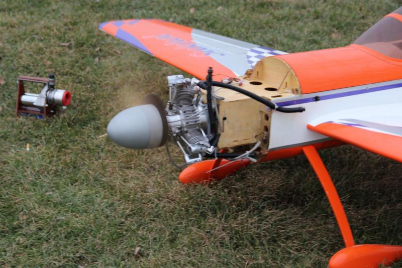 Silnik docierałem od stycznia do czerwca, olej syntetyczny zalecany w instrukcji castrol power 1 racing, silnik wypalił 9 litrów mieszanki 15:1 i 2 litry 20:1. Czasu pracy nie liczyłem, na ziemi przepracował godzinę reszta w locie. Śmigło fiala 24x10 kołpak i wentylator, w takiej konfiguracji obroty maksymalne 6500 ciąg około 12,5kg. Silnik pali bez problemu nigdy mi nie zgasł w locie, jest wstępnie dotarty i z biegiem czasu pracował coraz lepiej, a jego parametry się jeszcze zmienią po dotarciu i regulacji, wtedy będę mógł coś więcej powiedzieć. W telemetrii miałem ustawiony alarm na 130o C i silnik nigdy nie przekroczył tej temperatury, na pewno wentylator poprawia chłodzenie. Przykładowe zdjęcie, minimalna temperatura przed uruchomieniem silnika 9o i maksymalna 79o (11 styczeń 2015) Silnik uruchamiany rozrusznikiem do skuterów. Maski nie zakładałem ponieważ silnik z modelu waży 2kg a saito 3kg + wentylator z kołpakiem, poza tym musiałbym wycinać otwory z przodu maski, a model bez niej i tak był przeważony na przód.
