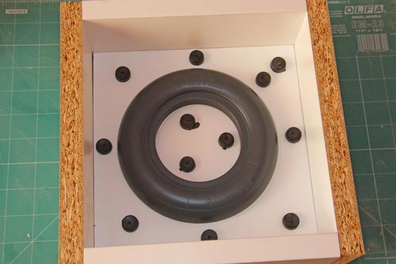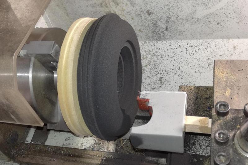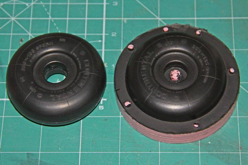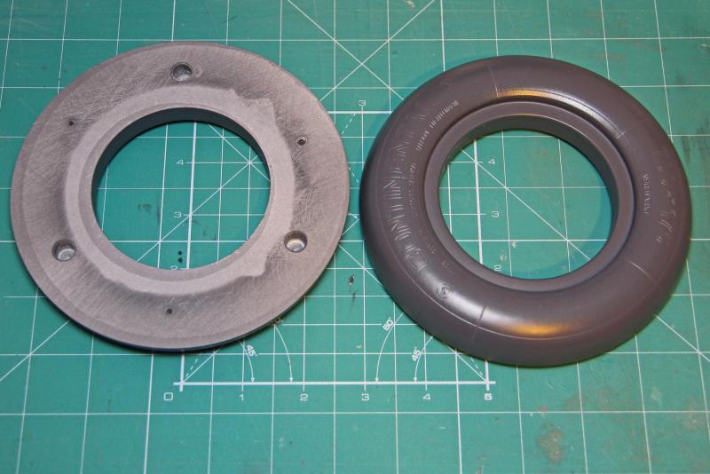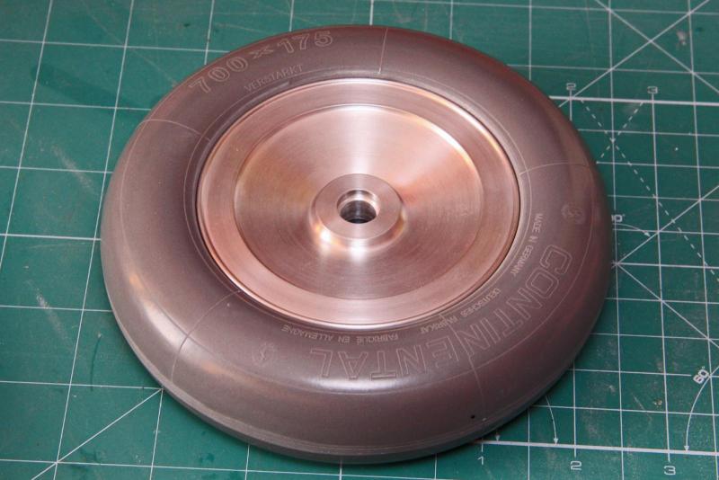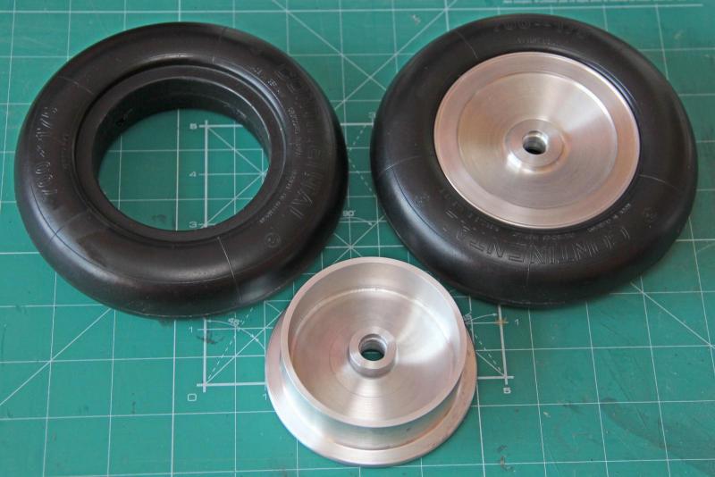 Kółka gotowe ponieważ opona waży 115 g. postanowiłem wykonać opony innym sposobem, kupiłem więc kółka z lekkiej pianki oszlifowałem je na tokarce następnie w formie połączyłem piankę z gumą fleksane i wyszło mi 71 g. gotowe koło waży 194g. wykonałem również oponę do kółka ogonowego w taki sam sposób jak zwykle kilka zdjęć