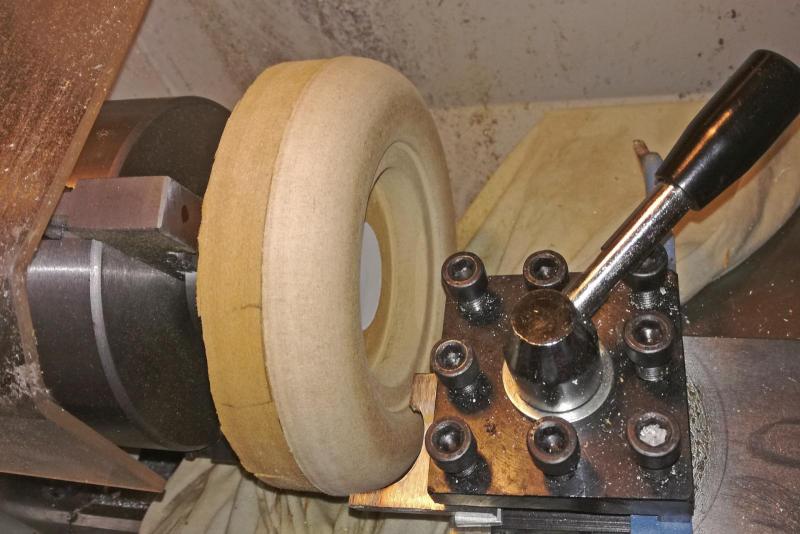Po długiej przerwie w budowie, pomalowałem kołpak i tłumik chciałem wypróbować kupioną tokarkę i jeszcze taki pomysł musiałem zrealizować opona najpierw wytoczyłem kopyto opony z płyty MDF po pomalowaniu przykleiłem literki wykonałem odlewy dwóch połówek z żywicy następnie odlałem formę silikonową opona wykonana jest z warstwy gumy (flexane) i pianki elastycznej jako wypełnienie i gotowy odlew felga jest jeszcze nieskończona