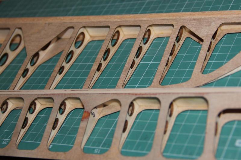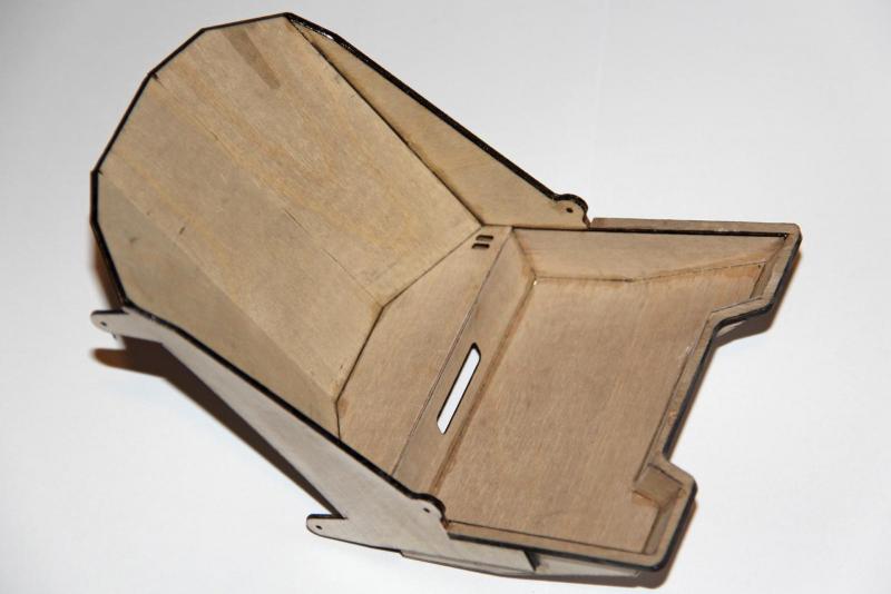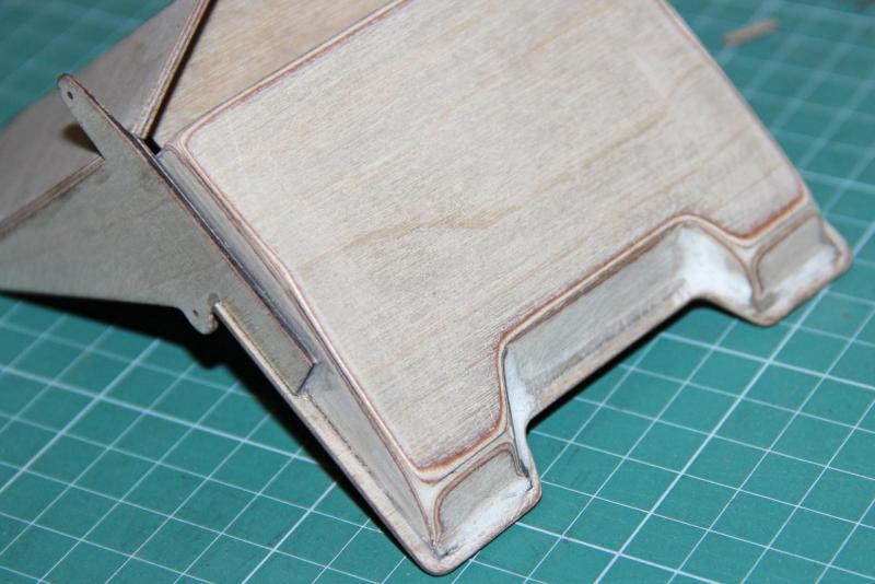 I tu się z Tobą kolego nie zgodzę, używam sklejki 0,6mm i 0,4mm nie wiem czy kiedykolwiek lakierowałeś sklejkę i balsę, na sklejkę nakładam jedną warstwę podkładu, w balsę wsiąka więcej kleju i podkładu dlatego trzeba nałożyć trzy, cztery warstwy, by uzyskać taką samą powierzchnię, więc różnica w wadze będzie znikoma, natomiast dużo stracimy na wytrzymałości, co przy silniku benzynowym jest bardzo ważne, a ja nie zamierzam stosować w modelu silnika elektrycznego. Jak myślisz, ile zaoszczędzę na wadze wykonując te elementy z balsy? Siedzisko fotela wykonane jest z sklejki o grubości 0,6 mm nie wiem czy zdajesz sobie sprawę z tego jakim nakładem pracy uzyskałbym taki sam efekt, wykonując je z balsy takiej samej grubości i ile bym zyskał na wadze? Oczywiście zdaję sobie sprawę z wagi części kokpitu wykonanych ze sklejki i dlatego staram się nie używać jej tam gdzie nie jest potrzebna a ile zaoszczędziłbym na wadze wykonując ramkę steru z balsy, a ile stracę na wytrzymałości? pozostałe części są z balsy, a sama ramka jest z sklejki 0,4 mm, w planach jest sklejka 0,8mm Jeszcze jedna sprawa, laminatowe drzwiczki po lewej podklejone balsą i pomalowane podkładem trzy warstwy, widać tu powierzchnię, która wymaga szpachlowania i jeszcze jednej warstwy podkładu. Dodatkowo podkład ścisnął balsę, musiałem wyprostować drzwiczki tak by pasowały do kadłuba i efekt tego widać na zdjęciu, całość wylądowała w koszu i zrobiłem nowe drzwiczki z sklejki, te po prawej i teraz są sztywne, nie odkształcają się i są lżejsze. Obawiam się, że to sam mogło by się stać z balsowym kokpitem.