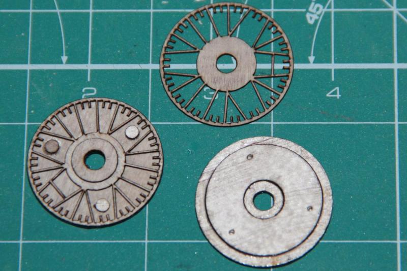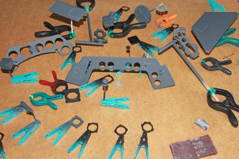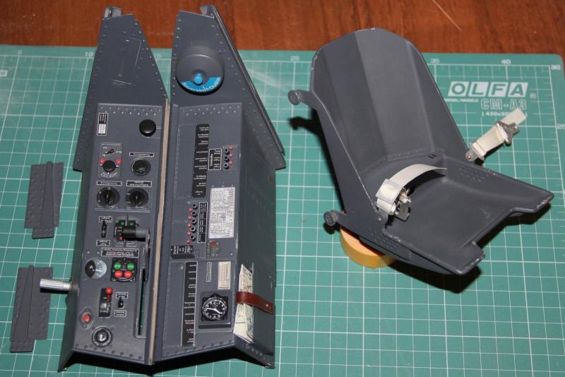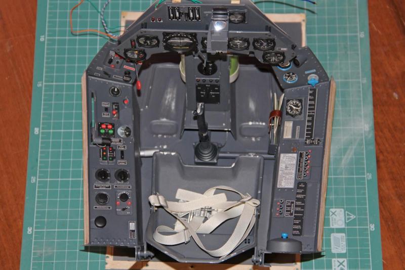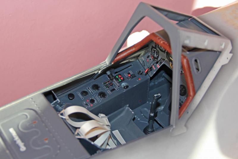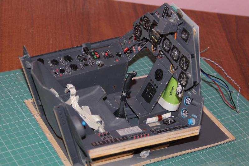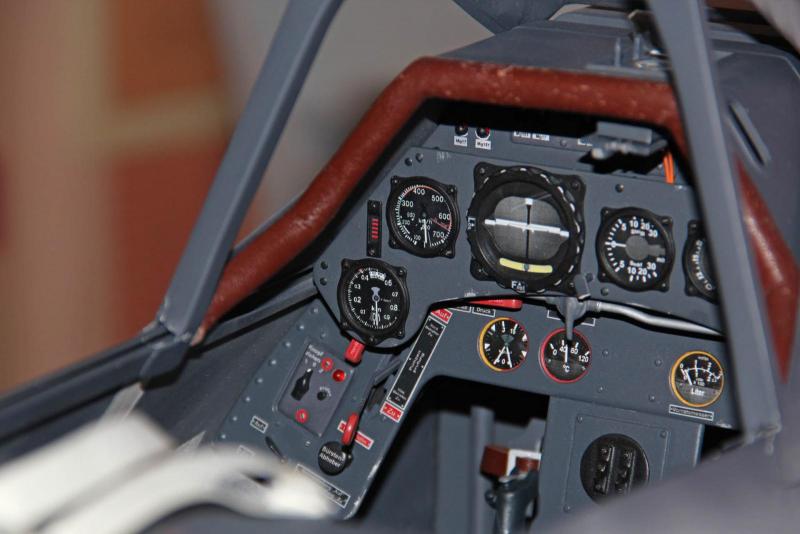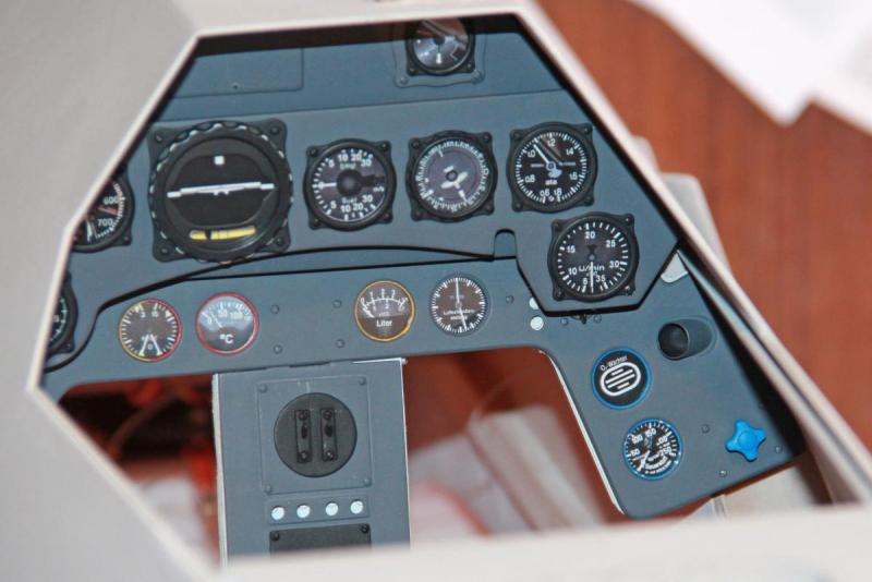 Drobna poprawka i nowa felga wycięta i pomalowana Tablice z przyrządami gotowe, brakuje jeszcze kilka szczegółów, pozostałym wyposażeniem kokpitu zajmę się później, a teraz muszę się zmierzyć z owiewką kabiny. celownik revi 16 B i nawet działa zdjęcia z prac przy kokpicie