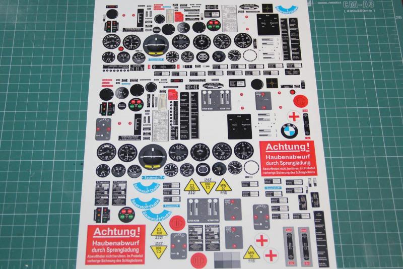 Owiewka kabiny gotowa, ale nie obeszło się bez problemów przykręciłem szybę do laminatu, nakrętki wkręcałem na loctit i po chwili szybka zaczęła pękać wokół śrub. Okazało się, że vivak nie jest odporny na loctit, powoduje on twardnienie vivaku tak, że staje się on kruchy, zrobiłem testy i wiem teraz, że nie jest odporny również na rozpuszczalnik nitro a nawet przyśpieszacz do CA. skoro już tak się stało to przerobiłem kopyto i poprawiłem profil szyby, teraz jest bardziej podobna do oryginału, wymagało to również wykonanie nowego laminatu, musiałem też zamówić nowy vivak i wytłoczyć szybkę, niestety tym razem nie udało mi się osiągnąć takiej jakości jak poprzednio. czasem próbuję iść na łatwiznę i robię coś takiego następnie wykonuję to tak jak być powinno imitacja szyby pancernej wyciąłem kilka części do kokpitu kończę rysować pozostałe części kokpitu, narysowałem też część naklejek, jak skończę to zlecę wydruk kalkomanii koledzy i tu potrzebuję waszej pomocy, może ktoś wie co powinno być na tych kartkach, niestety zdjęcie jakie mam jest w niskiej rozdzielczości i nie mogę rozszyfrować napisów w tabeli, wystarczy mi np. scrin z gry.