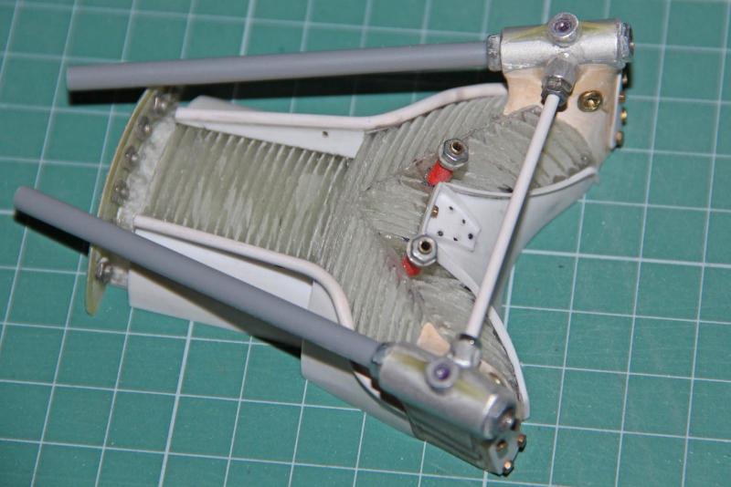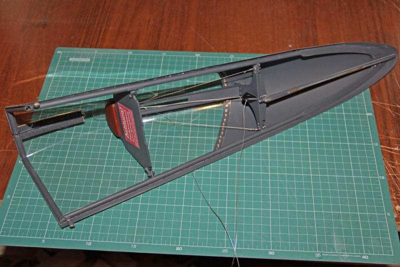 Wagą maski się nie przejmuj, mniej ołowiu pójdzie. Zważyłem moją maskę do FW tą kupioną i waży 640g ma średnicę 29 cm i 26 cm długości, a ta którą zrobiłem jest jeszcze cięższa (w tej chwili jest przykręcona do modelu). Czy linki do kółka ogonowego nie są za nisko i po schowaniu będą naciągnięte a po wysunięciu luźne, a powinno być odwrotnie, mogę się też mylić ponieważ nie wiem dokładnie w jakiej pozycji będzie podwozie po schowaniu, przetestuj działanie zanim zamkniesz kadłub.