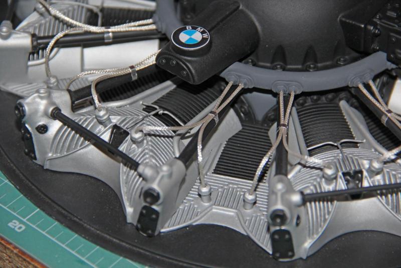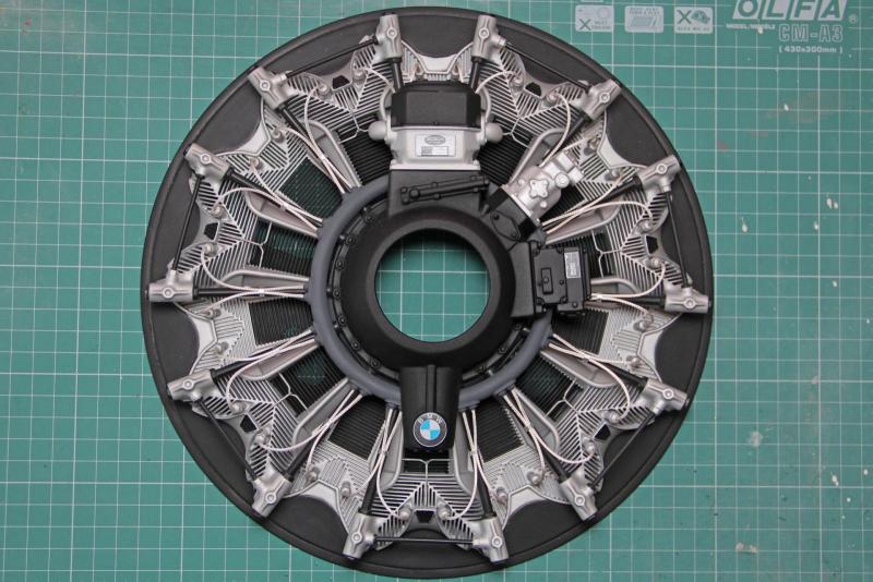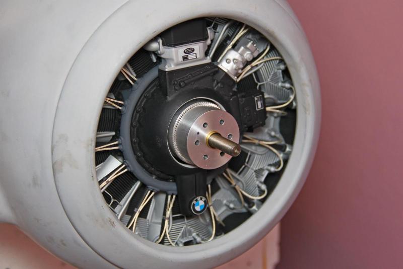 Model silnika gotowy, postanowiłem jednak wykonać urządzenia znajdujące się na bloku silnika będą one widoczne, a do silnika wytoczę piastę tak by wszystko się zmieściło. Nie mam żadnego zdjęcia brudnego silnika, więc na razie będzie jak nowy. Silnik BMW 801 przymiarka do maski, po założeniu kołpaka z wentylatorem, nie będzie wiele widać silnika a tak sobie wymyśliłem chłodzenie silnika kilka zdjęć z prac nad silnikiem