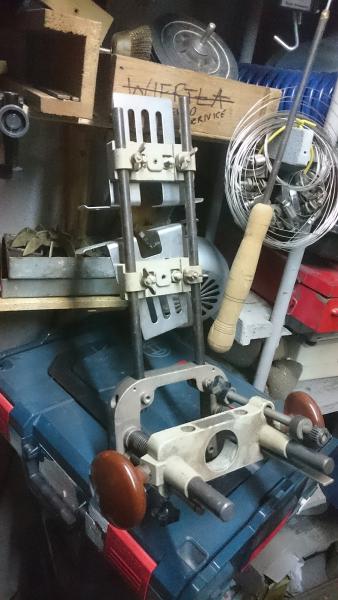 Witam, Jakiś czas temu, stałem się posiadaczem leciwego sprzętu warsztatowego. Mam w swoim posiadaniu, dziwną przystawkę "frezarkę". Zdjęcie poglądowe załączam poniżej Czy ktoś z was potrafi zidentyfikować ten sprzęt? Na początku myślałem, że to jakaś przystawka do Celmy. Jednak z tego co zauważyłem nie da się tam podłączyć wiertarki (standardowy łącznik jest całkiem inny) Dodam, że w swoim posiadaniu mam jeszcze frezarkę do drewna z identycznym mocowaniem. Byłbym wdzięczny za identyfikację. Pozdrawiam
