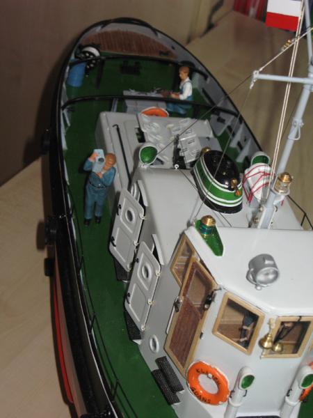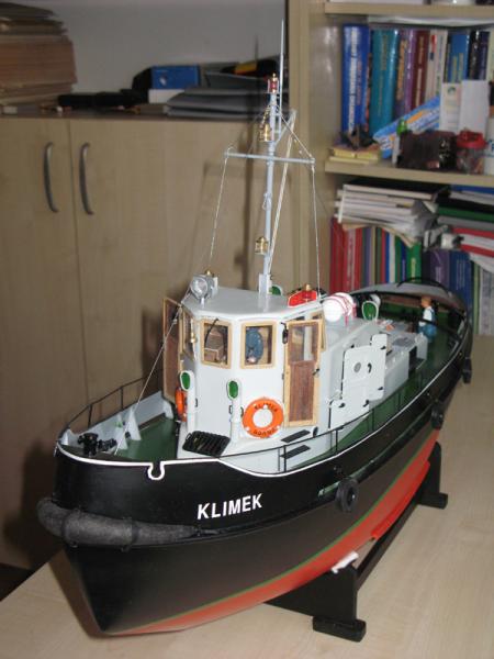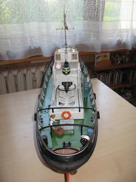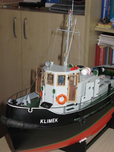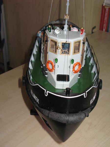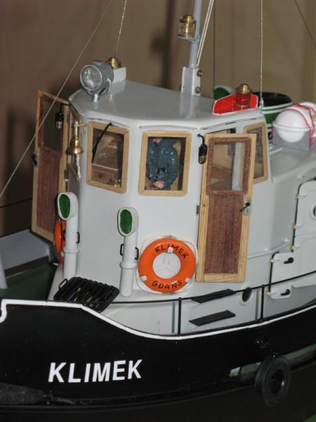 Witam w kolejnej odsłonie prezentującej budowę poczciwego holownika typu H180 KLIMEK. Było kilka dni przerwy w relacji spowodowanej pracami montażowymi modelu w całość. Po upływie ponad trzech miesięcy, model jest prawie gotowy do wodowania. Nie ukrywam, że problem stanowiło rozszyfrowanie olinowania masztu. Tu liczę na wyrozumiałość znawców tematu. Do całkowitego zakończenia brakuje już tylko ostatecznego wyważenia na wodzie. Z poprzednich prób wynikało, że dodatkowego obciążenia balastem wymaga dziób. Jako że, wszystkie elementy są na swoim miejscu, odbędzie się ostatnia, przed wodowaniem na otwartym akwenie, próba „wannowa” i rozmieszczenie dodatkowego balastu (po pracującym weekendzie - niestety). Członkowie załogi w liczbie trzech marynarzy to profesjonaliści w swoim fachu. Będzie pewnie z nich pożytek pomimo, że zarabiają najniższą krajową. Prezentuję również krótki film z dźwiękiem imitacji silnika napędowego i spalinami z diesla wydobywającymi się z wnętrza KLIMKA. https://youtu.be/MpMMDcH3fVs Do Andrzeja – bandera jest tymczasowa, zrobiona z ogólnie dostępnych materiałów (folia samoprzylepna). Ale wiem, że będzie profesjonalna. I tak, wiem - literka "K" jest już dopisana Relacja z wodowania wkrótce … -
