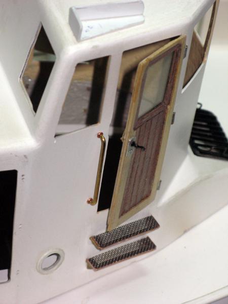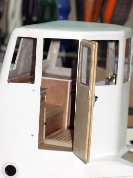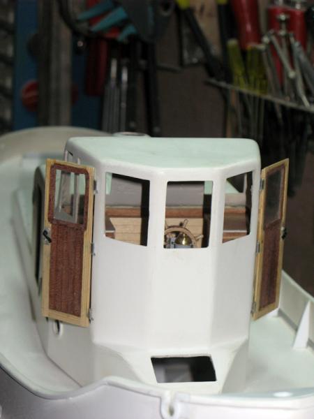 Pięknie witam przeglądających temat Klimek w budowie. Kolejny etap budowy holownika został prawie zakończony. Wycięte zostały otwory i pojawiły się drzwi do pomieszczeń w nadbudówce, sterówce oraz pokrywa włazu pod sterówką (wlot wentylacyjny ?). Wykonane elementy wymagają jeszcze dopracowania, szczególnie drzwi wejściowe do sterówki. W tych drzwiach zamontowane będą zawiasy, klamki i imitacja zamków. Fakt, że drzwi starówki na holowniku wykonane były całkowicie z drewna, w modelu podniesie to zapewne walor widokowy. Elementy zostały wykonane ze sklejki dobrej jakości, listew sosnowych oraz forniru. Będą one pokryte tylko bezbarwnym półmatowym podkładem impregnującym drewno. Kolejne prace koncentrują się na wnętrzu sterówki – koło sterowe, busola, szafki z szufladami, kanapa - siedzisko, greting, drewniana okładzina na ścianach wewnętrznych oraz zewnętrzne drewniane obramowania okien. CDN … -