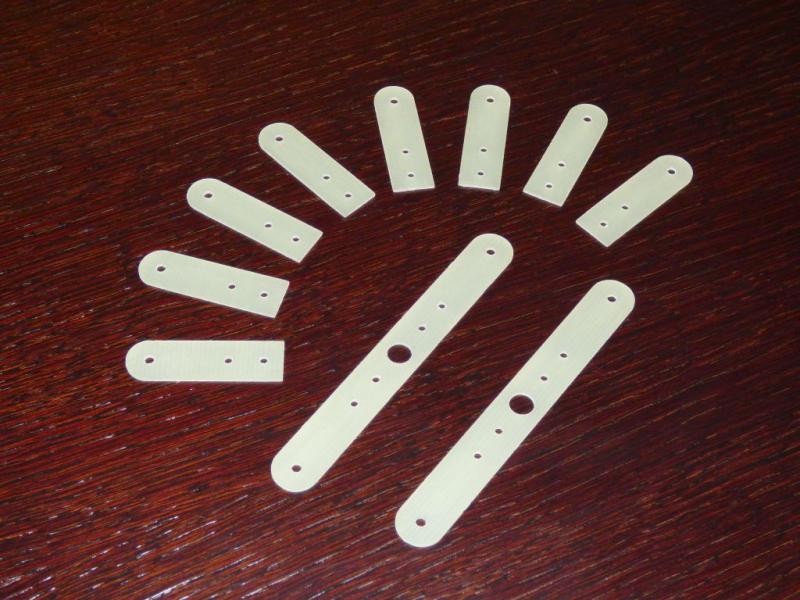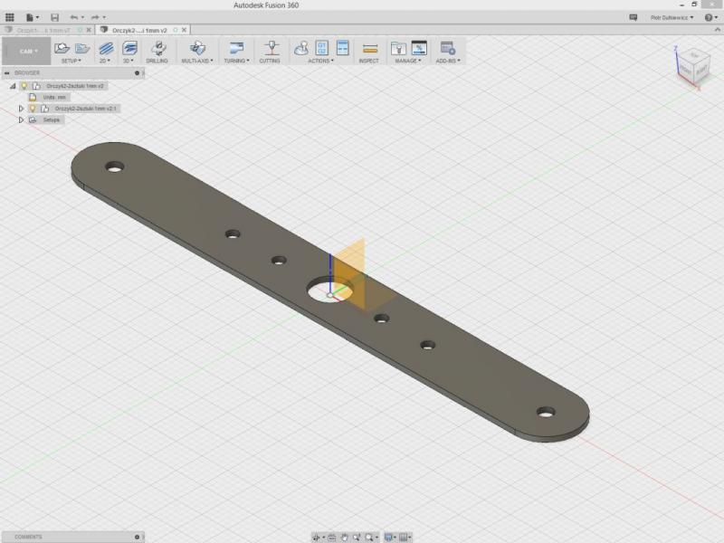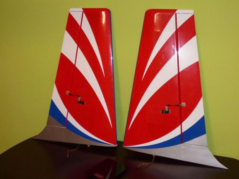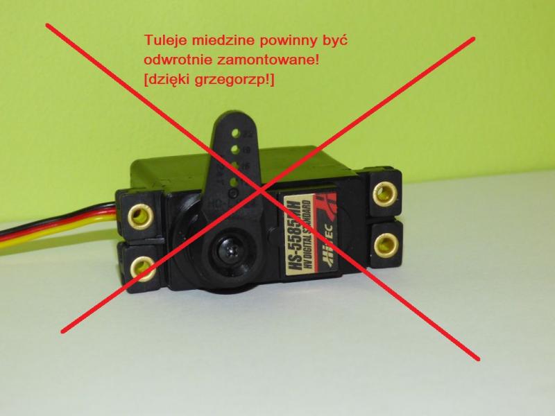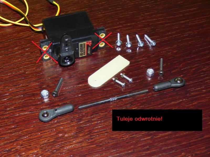 c.d. "celebrowania" relacji, jak to ktoś wcześniej złośliwie określił (sam się zastanawiam jaki jest sens opisywać instalację serw, ale cokolwiek może się komuś przyda): Montaż serwomechanizmów: Rekomendowane serwa do Su29 to JR-PROPO DS-8411 (13,5kg@6V, 0,15sek, 57.5g) w cenie $115/sztuka. Nie bardzo mi pasowało takie rozwiązanie, bo po pierwsze drogo, po drugie chciałem serwa HV. Po przejrzeniu ofert zarówno renomowanych jak i mniej renomowanych producentów, z pomocą kolegi M.Ch. na lotki i SW kupiłem w końcu 4x Hitec HS-5585MH (17kg@7.4V, 0,14sek, 60g) oraz 1x Hitec HS-8335SH (24kg@7.4V, 0,13sek, 64g) na SK. Zapewne nieco przesadziłem, ale liczę, że serwa te przydadzą mi się kiedyś do kolejnego, większego modelu. Poza tym np. Extreme Flight do swoich akrobatów 78" zaleca serwa MKS-HV1220 (23kg@8.4V, 0,11sek, 58g), także jeszcze mocniejsze i szybsze niż HS-5585MH. Lotki: Instalację serwa zacząłem od montażu przedłużacza. Całkowita długość przewodu powinna wynosić około 50cm. Zastosowałem gotowy przedłużacz, wtyczki zabezpieczyłem koszulką termokurczliwą: Kolejny krok to nawiercenie wiertłem 1,5mm otworów na śruby. Po nawierceniu warto przykręcić serwo a później ponownie wykręcić śrubki i w powstałe po nich otwory kapnąć po 1 kropli rzadkiego CA. Widoczne na zdjęciu śrubki zostały zakupione oddzielnie (kolejny ukłon w stronę "kierownika działu zakupów"). Ampulowe gniazda znacznie uprzyjemniają pracę i zabezpieczają przed ześlizgnięciem się śrubokrętu i uszkodzeniem folii: Chociaż nie wszyscy są zwolennikami tego rozwiązania - założyłem fabryczne gumki i tulejki miedziane: Ponieważ fabryczne orczyki serw okazały się za krótkie postanowiłem je przedłużyć przy użyciu laminatu. Docelowa odległość między osią obrotu a ostatnią dziurką przedłużonych orczyków lotek i SW to 42mm. Upewniłem się o tym wykonując "prototyp": W tym momencie trochę się zagalopowałem i założyłem, że wartość 42mm będzie prawidłowa również dla SK. Mam nadzieję, że nie będę tego żałował. Elementy zaprojektowałem w Fusion360, później kolega wyciął mi je na CNC: Jak widać wyciętych elementów jest dwa razy za dużo. Mając w zapasach laminat 1mm nie miałem ochoty kupować grubszego, więc postanowiłem wykonać orczyki z dwóch warstw 1mm klejonych żywicą 30min. Laminat przed klejeniem lekko zmatowiłem papierem ściernym: Elementy laminatowe przykręciłem do oryginalnych orczyków na 2 śrubki fi2mm. Nakrętki zabezpieczyłem klejem CA. Poniżej wszystkie elementy potrzebne do montażu. Mały mankament w prezencie od Sebartu - ampulowe śrubki do snapów mają rozmiar calowy: Tak wygląda całość po zmontowaniu. Śrubkę mocującą orczyk do serwa zabezpieczyłem "loctite": Gotowe skrzydła czekają na dokończenie kadłuba. 42mm orczyki zapewniają dobrą geometrię, a maksymalne, fizycznie możliwe do uzyskania wychylenia lotek uzyskuje się przy ustawieniu wychyleń w radiu na poziomie ok.100%: Waga skrzydeł to 497g i 498g. c.d.n.