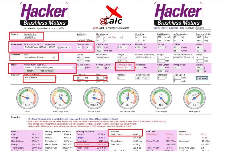 Szczerze mówiąc, zadowalam się tym, że mój silnik powinien dać radę. Po drugie - jak widzę Sebart poleca 20x11E do tego silnika, a Hacker 20x10E. Po trzecie - w/g kalkulatora na stronie Hackera ten silnik się zagotuje nawet na 20x10E @10s. Po czwarte - moc chwilowa (podawana przez producentów) tego Hackera jest mniejsza niż mojego AXi, A po zerowe -> nie jestem żadnym asem, żeby czuć różnice pojedynczych procentów lub ułamków procent wagi całości. Jak ktoś ma jakieś fajne testy Hackera to poproszę (z ciekawości). Wolną chwilą też poszukam. Żeby nie być gołosłownym: