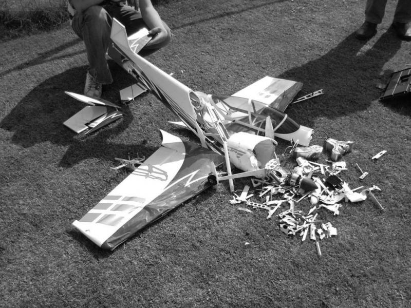No i kuźwa po oblocie :( : ( :( Po wnikliwej analizie (nie było lekko jak widać) przyczyną okazał się orczyk lewej lotki wklejony na CA. Cóż, wracam do latania piankami