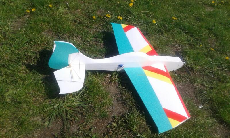 Ultron 3d - wzmocnieniaradek_lodz odpowiedział(a) na radek_lodz temat w Nasze modele (prezentacje i relacje z budowy) No dobrze. Model ukończony. Tak wyglądają szczegóły: statecznik jednak zrobiłem z 3mm depronu ale spokojnie można zrobić z 6mm ja musiałem przesuwać pakiet do tyłu, żeby go wyważyć.... Model wyposażony jest w silnik emax xa2212/820kv, śmigło apc sf 10x3.75, regler jakiś chiński 20gramowy i pakiet turnigy 800mah. Model gotowy do lotu waży 331gram, więc jestem mega zadowolony - lżej niż wersja konstruktora ale mój nie ma podwozia. Co do właściwości lotnych to podtrzymuje wszystko co przeczytałem o tym modelu czyli że lata rewelacyjnie. Przy wadze 331 gram mam wrażenie że szybuje lepiej niż nie jeden metrowy szybowczyk:) Trochę żałuje, że nie kupiłem 6mm depronu białego bo te podkłady mocno psują efekt wizualny...