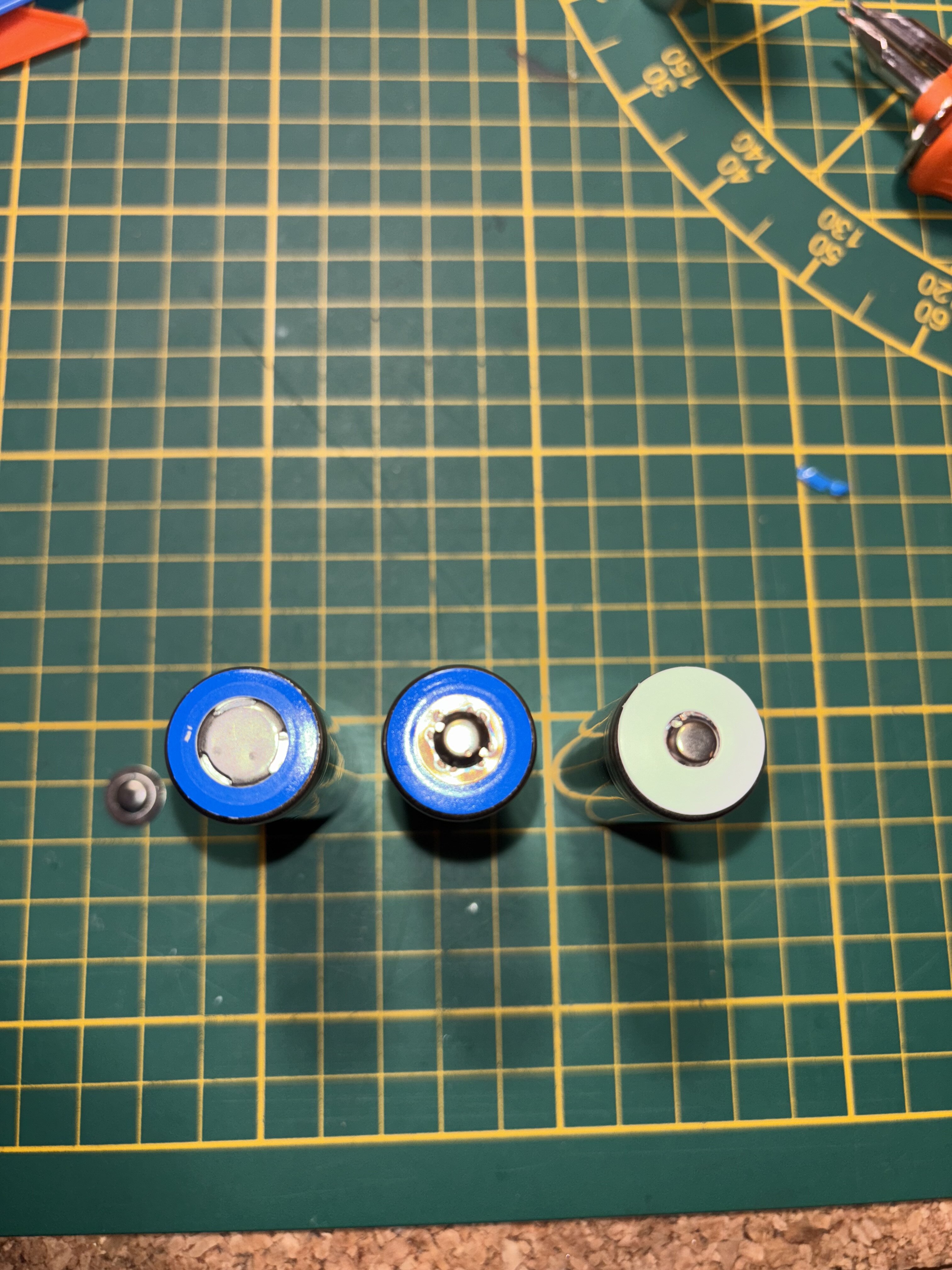 Czasami zachodzi potrzeba użycia ogniw w rozmiarze 18650 z „ bateryjnym „ plusowym terminalem . Dogrzewam takie terminale do ogniw . Jak wiadomo ogniwa przemysłowe terminal dodatni mają płaski często poniżej górnej lini ogniwa . -