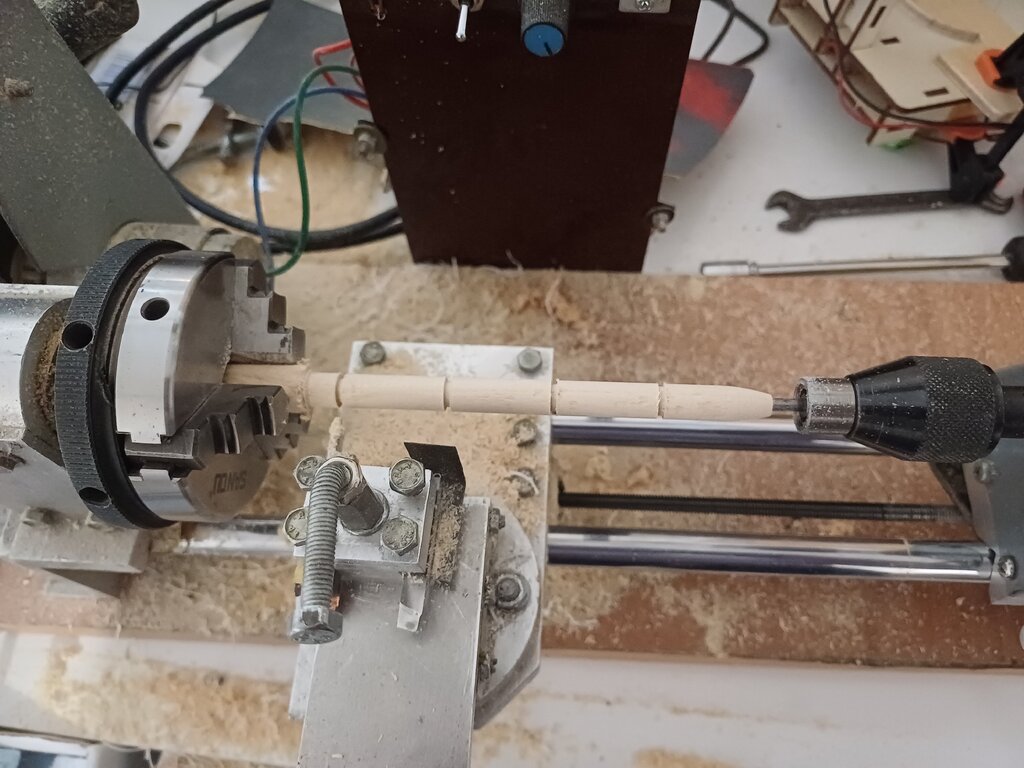 8. Zrobiłem na tokarce słupki pachołków i zmontowałem. Przy pomocy nowej lutownicy 80W połączyłem dwie ramy. Jeszcze będzie połączenie rurkami ramy z dachem nadbudówki i wtedy będzie stabilnie.