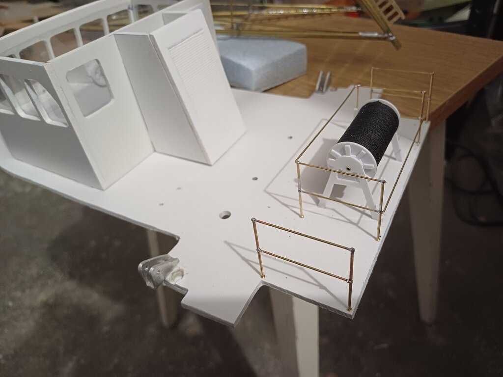 17. Od lutego 2025 budowany jest nowy model. Domyślacie się jaki? Załoga i kuter znany z filmu wyświetlanego w TV. Moja metoda wykonania drabinek z żywicy nałożonej na rowki w drewnie zrobione frezarką.