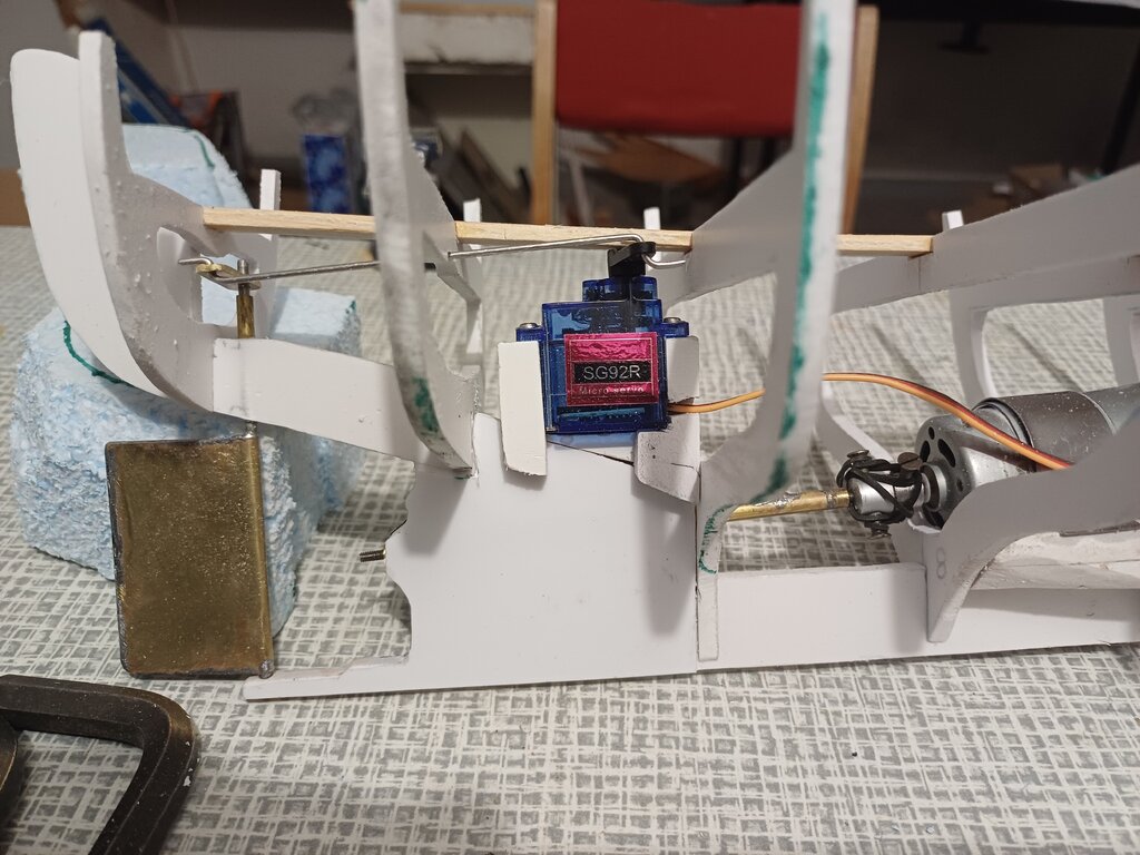 Chyba wiesz, że na 3 maja, blisko ronda jest sklep modelarski Modelarz. Prowadzi także sprzedaż internetową. Poprzednio mocowałem serwo steru klockami do wręg. W tym modelu nie pasowało mi takie mocowanie. Wpadłem na pomysł mocowania do stępki na środku. Jak to wygląda, na zdjęciach. Wspomnę. 11 lutego miną 2 lata od śmierci J.Biedowicza.