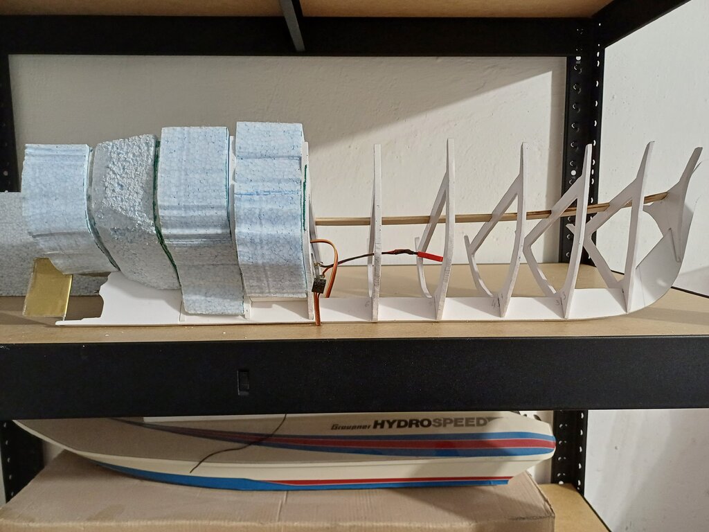 Może jeszcze nie jest za późno żeby zastanowić się czy nie zastosować dzwonka 3f. W takim małym modelu nie powinien się grzać. To w końcu pływanie rekreacyjne. Inny kąt osi steru. Na poszycie sklejka, tkanina i co dalej, jakie wykończenie. Będą błyszczące okucia? Trudna do zrobienia będzie kabina. Szyba i ramka szyby, skórka na siedzenie? -