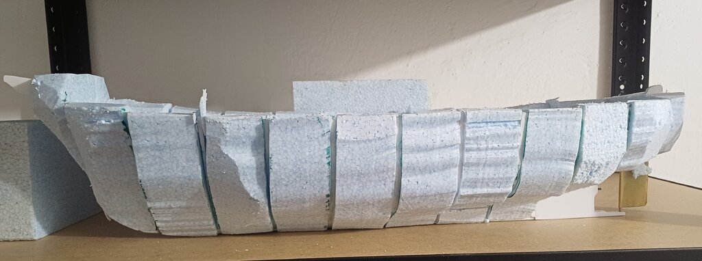 W Monterey pomalowałem kadłub podkładową i kleję pokład. Będę miał do zrobienia drabinki, w tym 2 o długości 200 mm i 32 stopniach. Wymyśliłem sposób, żeby na desce wyfrezować kształt drabinki (1,5) i zalać żywicą. Po wyjęciu zrobić drugą. Zastanawiam się jaką żywicę w miarę dostępną użyć.