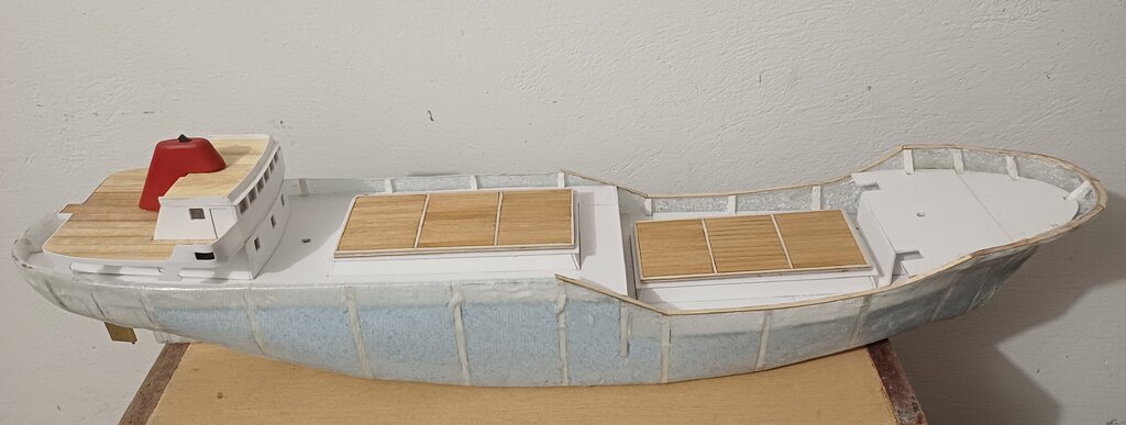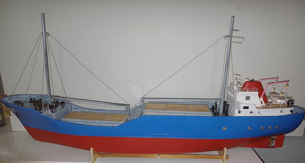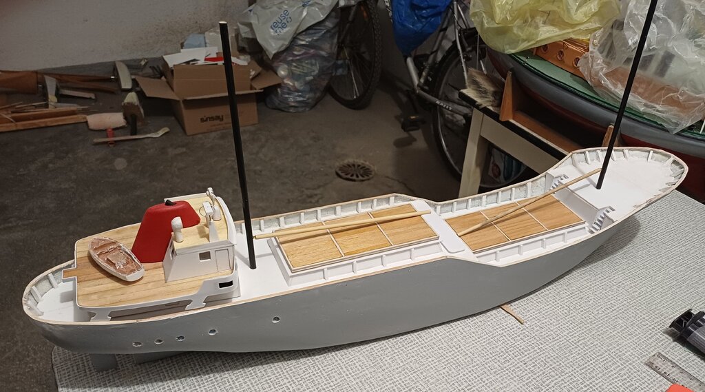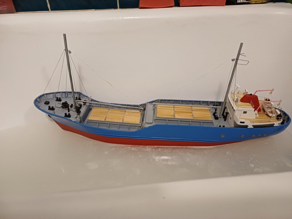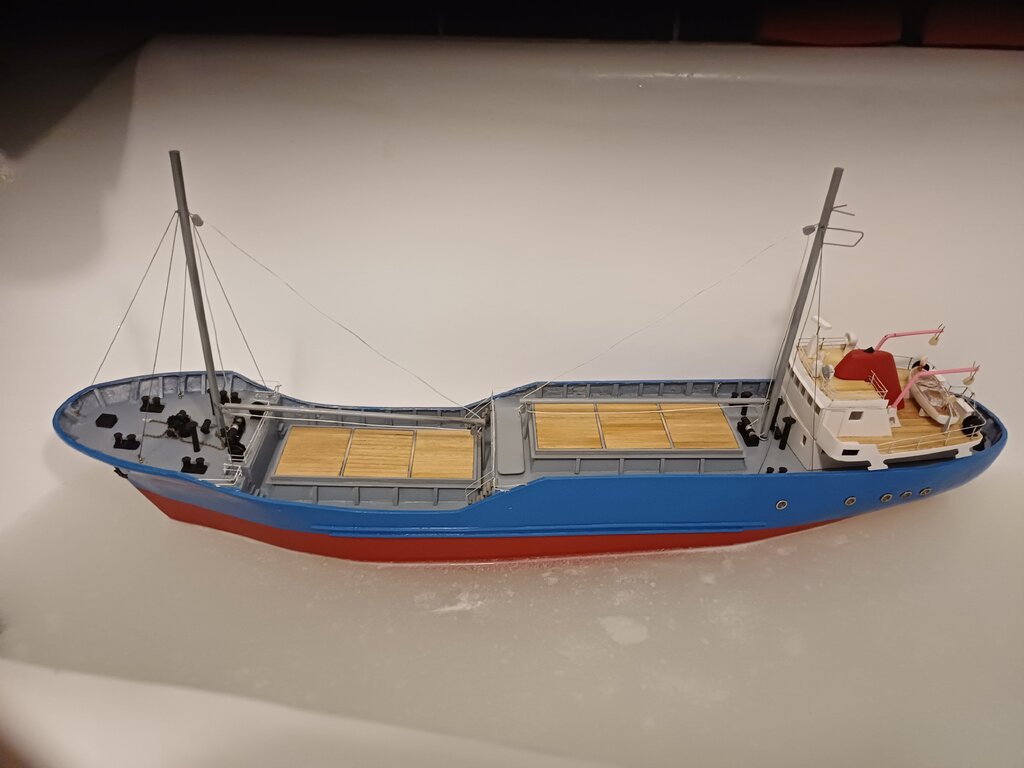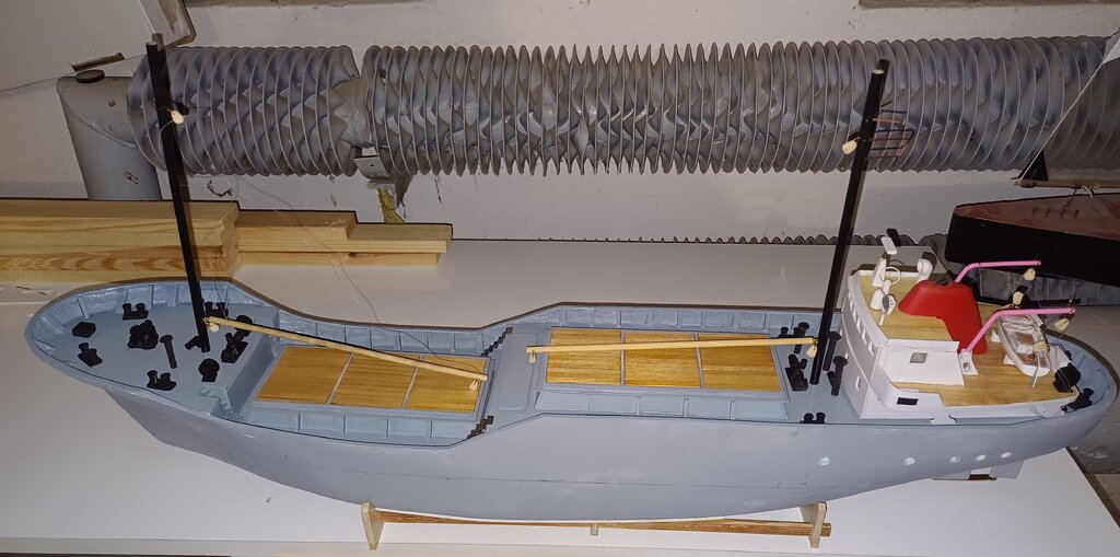 Model jest budowany według instrukcji Mercantic ze strony www.bilingboats.com Nie wszystko jest dokładnie zrobione z różnych powodów i nie podobało mi się położenie wału. Znalazłem potem plan A4 dwóch rzutów i są różnice. Np. inne są wywietrzniki. Powinno być jeszcze odwodnienie dolnego i górnego pokładu. Na początku relacji widać styropian o niebieskim odcieniu. Będzie pływał na spokojnej wodzie Kanału Bydgoskiego. Mnie się ten uskok nie podoba. Inne statki mi się bardziej podobały ale nie ma planów. Np. Nautica, Carolines, Petit Folmer, coaster Hell, Hela, Brake i inne. -