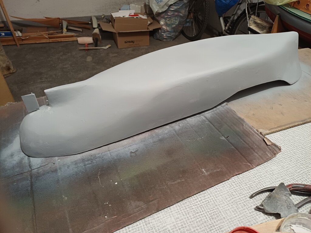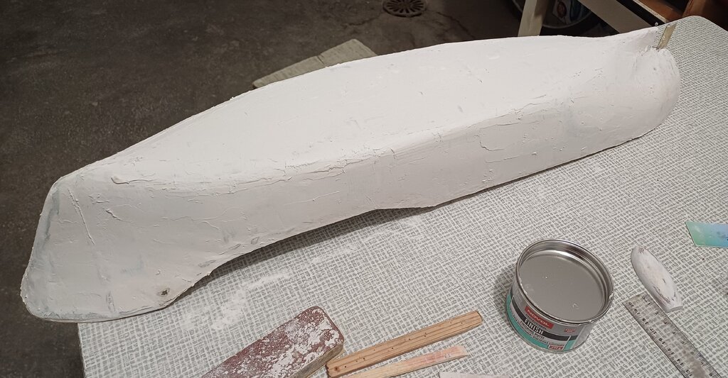 Ostatnio kadłub szpachlowałem, szlifowałem i szpachlowałem. Wcześniej robiłem pachołki i wywietrzniki. -