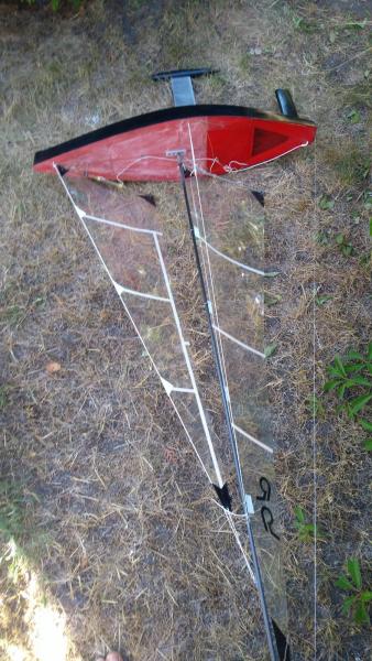 Przedstawiam film z dzisiejszego, przedpołudniowego krótkiego rejsu. Drugie wypłynięcie i chyba podpłynęła za blisko brzegu i zahaczyła o łodygę od liścia i ściągnęło bliżej brzegu. Kijem wyprowadziłem żaglówkę i na kursie z wiatrem dostała silny wiatr, nabrała prędkości aż na dziobie zrobiła się fala jak przy kajakach wyczynowych. Zdziwiłem się, nie poszła dziobem pod wodę. Wielki plus. Po południu, po deszczu wiatr ucichł. Chciałem popływać ślizgiem ale woda na kanale była z zielskiem. Zrobiłem powolne, dwa kółka i koniec.