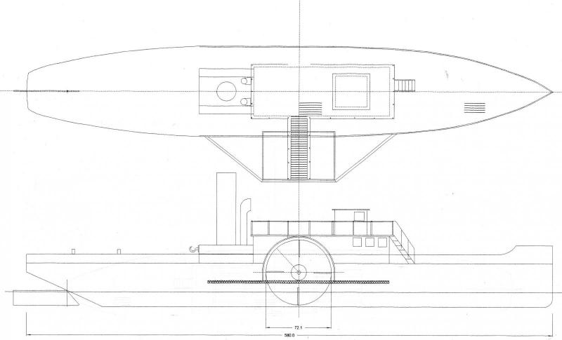 24. Będę 3 raz przerabiał plan bocznokołowca. Nie bardzo można zwiększyć prędkość modelu obrotami koła łopatkowego. To musi być duże koło średnicą i szerokością. Znalazłem model gdzie średnica koła do długości była 1 : 10. Poza tym sterowność będzie mała przy małej prędkości. Ster nie jest za śrubą gdzie jest większy przepływ wody. Dlatego są duże, długie stery. Stosowane są dwa silniki elektryczne z przekładniami a ich zębatki sprzęgnięte są z większą zębatką na głównej osi, po jednym na koło z osobnym sterowaniem. Były rowery wodne na pływakach napędzane śrubą. Jak się depło to szybko płynął. Późniejsze plastikowe, łopatkowe to trzeba się namęczyć i ledwo płyną.