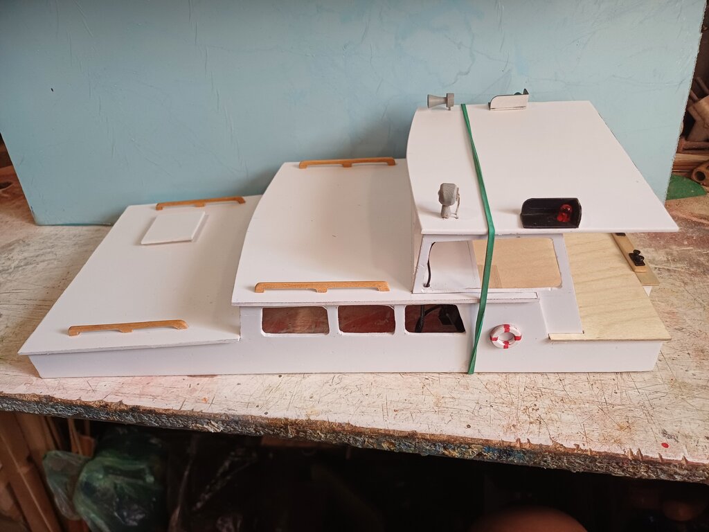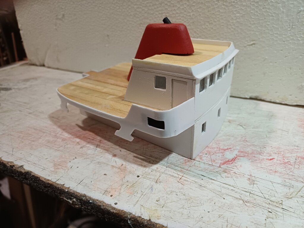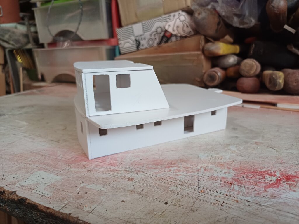 Zrobiłem nową nadbudówkę. Poprzednia była za mała. Błędne przeliczenie. Płyta używana jako tło zmniejszyła się bo z niej zrobiona jest ta nadbudówka.