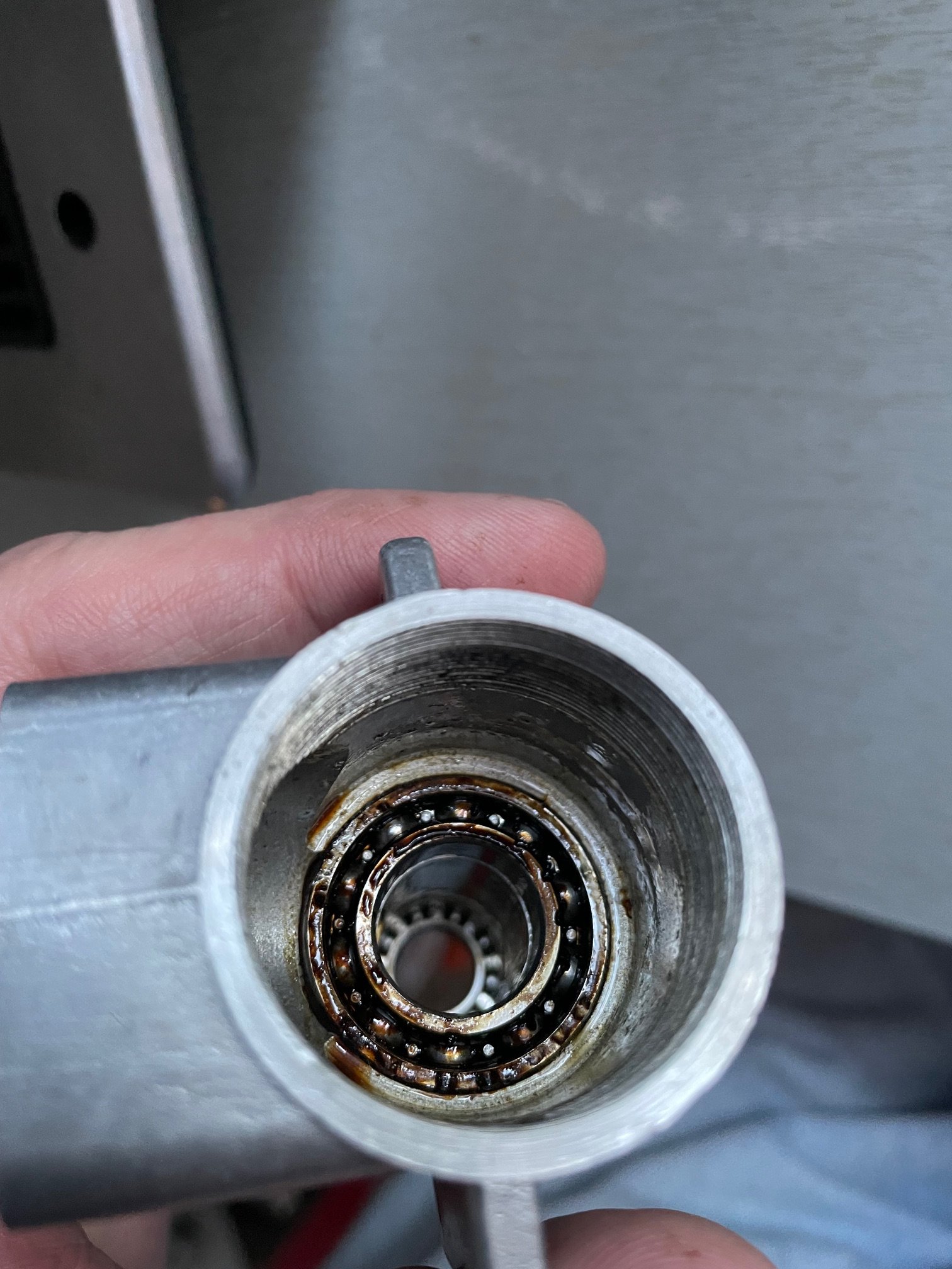 Pod nowe łożysko to muszę drapać to spalone g bo myjka na nic i pasta do polerowania lakieru samochodowego (innej nie mam), oryginalnie tylne łożysko ma fimy NACHI więc się postarali, przednie no name