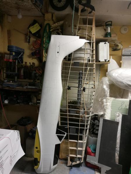 Dzisiaj niedziela więc trochę nadgoniłem prace przy Foce dokończyłem lewe skrzydło i wycentrowałem osadzenie tunelu na rurę Dorobiłem końcówki skrzydeł Wykonałem też klapy