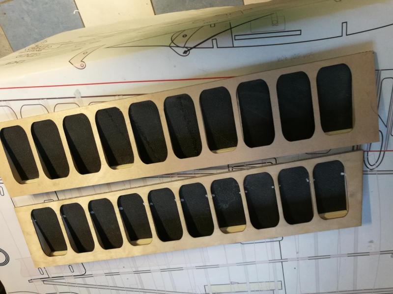 zachowałem profil przykadłubowy a wygląda na to że podobny jest do NACA2415 Ciąg dalszy prac przy skrzydłach Należało wykonać tunel na rurę Obsadziłem też belki do mocowania mechanizmu podwozia Żeby zamknąć skrzydło muszę wykonać lotki i dopasować zawiasy