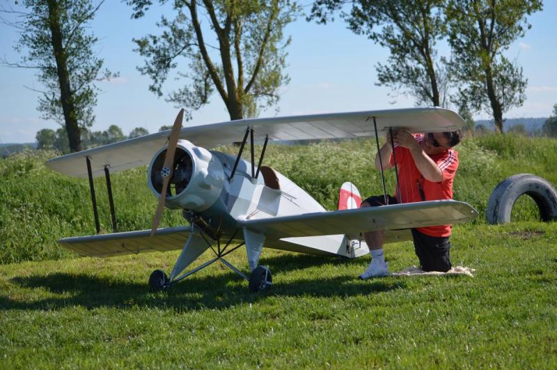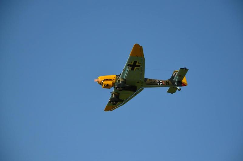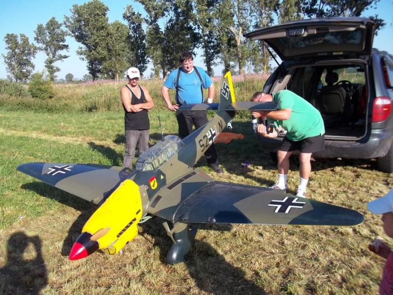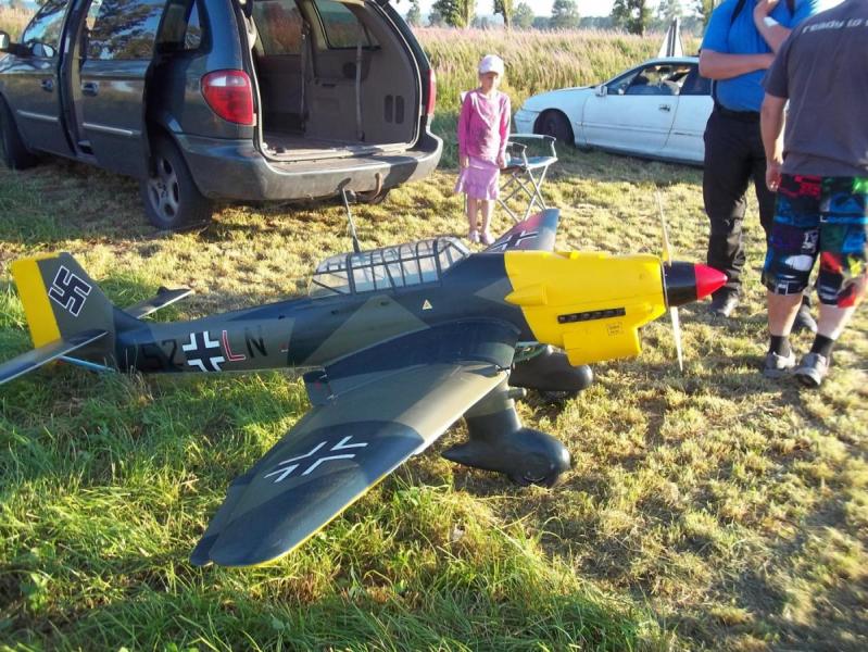 Chcę przeprosić wszystkich którzy chcieli zobaczyć oblot Junkersa ale postanowienie o oblocie było tak spontaniczne i przypadkowe że nawet nie zdążyłem się dobrze do tego przygotować "może i lepiej " . Chcę tylko zakomunikować że mimo moich wielkich obaw model poleciał bardzo stabilnie , nie musiałem wnosić żadnych poprawek na lotkach jedyny problem który był i to wcale nie mały to zaklinowanie statecznika poziomego " do przerobienia" a mianowicie bardzo górował nawet wychylenie trymeru do końca nie pomogło cały lot odbył się na wychylonym drążku co odbiło się na lądowaniu . Silnik mimo że na dotarciu poradził sobie bardzo dobrzy z tak ciężkim modelem myślę że jak zostanie dotarty to będzie idealny to Junkersa. Przedstawiam kilka fotek z oblotu. Na dzisiaj planuję oblot następnego mojego giganta jest Bucker BU 133 Jungmaister w skali 1 / 2 o rozpiętości skrzydeł 3,4 m i wadze około 40 kg