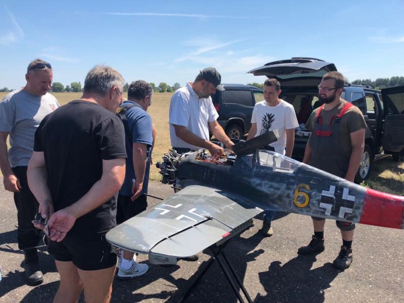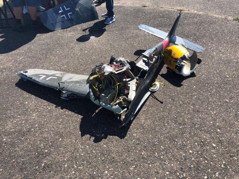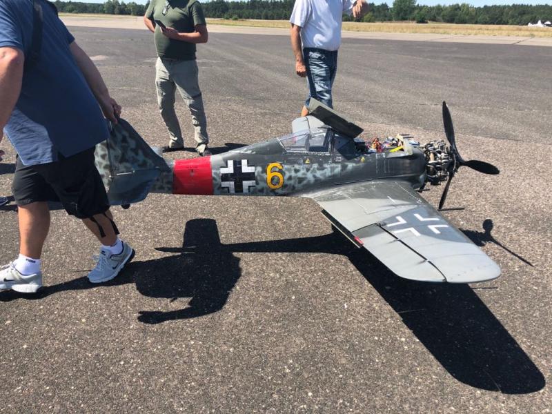 No dzisiaj byl dzien oblotu , pojechałem na lotnisko do Piły i !!!!! To byl pierwszy i ostatni lot mojego Fw 190 . Popelnilem przedszkolny błąd a mianowicie zle odmierzylem srodek ciezkosci i model zaraz po wystartowaniu to zadziałał to dolowal i na domiar zlego wcale nie reagował na stery , tak że z modelu nie zostało nic nawet silnik na zlom