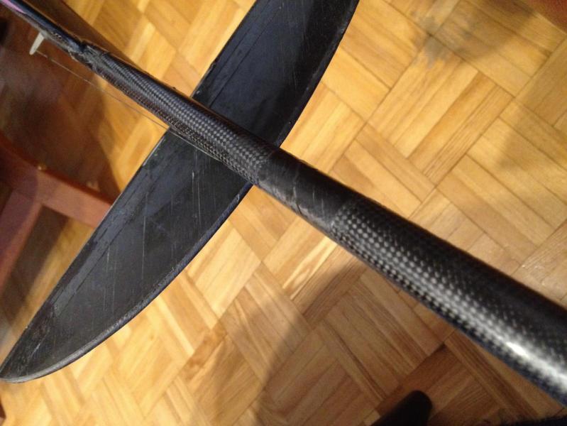 Czołem Panowie. Model ma się dobrze, systematycznie lata, a jak lata to i się tłucze jako, że latanie na łące dużo lepiej mi wychodzi to jednak zbocze(przeważnie zarośnięte kopalnie) niestety nie są dla mnie tak pobłażliwe jak "normalna termika". Ostatnim razem po pozornie lekkim dzwonie z drzewem, model spadł z ok 1,5m, obejrzałem skrzydła stateczniki, wygląda, że będzie ok, a zaraz po rzucie ujrzałem w locie składający się kadłub Drugiego dnia było już troszkę lepiej W pierwszej kolejności kadłub złapałem na CA. Tak, żeby było wszystko równo i względnie się to trzymało. Dużo pomaga przyspieszacz, ale sprawnie złapałem geometrię kadłuba. Kolejnym krokiem było zmatowanie klejonych części. Ja użyłem do tego papieru o gradacji 400, a "gluty" z CA bardzo starannie i delikatnie oszlifowałem dremelkiem. Niestety ręcznie szybciej przeszlifujemy kadłub na wylot niż zedrzemy górkę z CA. Do sklejenia użyłem takich samych tkanin jak do budowy kadłuba. 1 warstwa 45/45 węgla 93g/m^ i jednokierunkowy węgiel 125g(w kadłubie była 100-tka). Taką łatkę naklejam na folię z polietylenu(do którego nic się nie klei), przesączam całość żywicą, odsączam(ale tutaj nie szalejemy jak podczas budowy) i docinam na wymiar moją łatkę. Ważne jest, aby tkaniny były z naddatkiem i nawet jak się trochę rozjadą to nic. Kawałek folii z przesączonymi tkaninami docinam razem nożyczkami do odpowiedniego kształtu, przykładam do kadłuba i całość owijam niezastąpioną taśmą izolacyjną. Po sklejeniu całość wygląda tak i jest mocna jak kamień. Niestety podczas klejenia ogon mi minimalnie uciekł do góry zwiększając kąt statecznika o ok. 0,3 stopnia, ale uważam, że nie ma tragedii. Wszystko jest prostopadle i będzie dobrze latać. Jak tylko pogoda nie pozwala na latanie i mam chwilkę wolnego to zaczynam klejenie drugiego zestawu do kupy: Na nowym, lepszym skrzydle chcę dokładnie sprawdzić wysokość wyrzutu przy zastosowanym profilu i cięciwie. Całość będzie pewnym odniesieniem do kolejnych faz rozwoju mojej konstrukcji. Po pobycie w Korczagach zauważyłem, że modele są wyrzucane znacznie wyżej niż mój i do startu w rywalizacji muszę jeszcze podrasować swój model. Plan jest taki - zrobić dwa skrzydła metodą mylarową - jedne o cięciwie 165mm a drugie 160mm. Profil jaki zamierzam zastosować to AG12-14 lub bazować na projekcie SynergyII. Brakuje mi jednak tej wysokości oraz widzę teraz, że lepsze będzie luźniejsze krążenie szybkim modelem, który będzie dużo lepszy na przeskoku i którym łatwiej wrócić do pola lądowiska Może macie jakieś inne pomysły jakie profile zastosować? Mój model ma też niestety za małe lotki. Brakuje klapy przy szybszym lądowaniu co obserwowałem na zawodach. W skrzydłach nowych też są już niestety wycięte, ale będę to zmieniał w kolejnych konstrukcjach. Po zoptymalizowaniu konstrukcji chcę też powalczyć z wagą i zbić co najmniej 30g na wyposażeniu, co jest realne przy lżejszych serwach i przejściu na zasilanie 1S, obraniu odbiornika z obudowy itp. Na zimę mam plan wykonać formy skrzydeł i stateczników(co do metody to muszę oszacować różnice w kosztach formy aluminiowej i tradycyjnego frezowania w Prolabie i wykonania negatywów z żywicy). Ale to dopiero jak dojdę do optymalnych profili i ustawień mojego modelu.