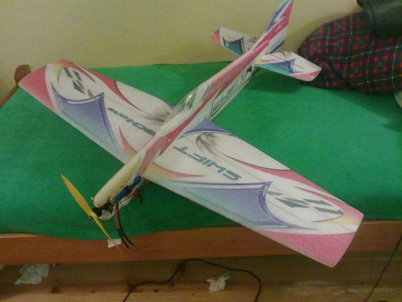 1. Tak przeglądam to forum i przeglądam... Tu jakiś Krill... Tu Extra 33%... Modele z H9... Może teraz coś mniejszego TechOne już jakiś czas temu wypuścił serię niesamowitych samolotów z EPP, z których kilka tutaj dla Was opiszę. Znajdziemy tam modele: Yak 54 (90cm i 110cm rozpiętości) Su 31 (107cm) Swift (120cm) Mini Tempo 3D i Tempo 3D (odpowiednio 80 i 100cm) I wiele innych (halóweczki głównie), te jednak moim zdaniem zasługują na uwagę podobieństwem wielkościowym, konstrukcją i jej wytrzymałością. Ja i mój kolega z mojego miasta (powiedzmy że to miasto już jest ;p) mamy Swifta i Mini Tempo 3D. Ładnie się zgrało bo największy i najmniejszy Oba modele prowadzą się 'za rączkę'. Samoloty są świetnie wzmocnione. Swift posiada 4 pręty węglowe 3mm, połączone z mocowaniem silnika, 2 pręty stalowe 1m od spodu i od wierzchu skrzydła (należy je samemu wstawić; w opakowaniu skrzydła są w dwóch częściach), statecznik poziomy wzmocniony węglowym płaskownikiem i ster wysokości wzmocniony sklejką 3mm służącą do połączenia połówek steru. W Mini Tempo 3D skrzydła są jednoczęściowe s wstawionymi już prętami węglowymi, bodajże 1.5mm. Kadłub wzmocniony EPP z wstawionymi płaskownikami węglowymi do środka, tak jak modele Rc Factory (np. Flash). Mocowanie silnika sklejkowe, wysokość wzmocniona węglem. Modele charakteryzują naprawdę pokaźne powierzchnie jak na tej wielkości samoloty, dzięki czemu zachowują się stabilnie. Ze wszystkich jedynie Swift wyposażony jest w kabinkę, dzięki której zaoszczędzono na wadze (zawsze to kawałek pianki mniej). Do każdego modelu dołączone jest podwozie. Swiftem idzie poszaleć na boisku trawiastym bez problemu, Mini Tempo, jako że mini, tylko z równiejszej powierzchni, jak na przykład asfaltowa droga. To tyle o konstrukcji, do konkretów Ja latam Swiftem. Wyposażyłem go w serwa KDS N290 (polecam), jednak zwaliłem kwestię napędu... (Albo śmigło nie takie...) W każdym razie model idzie pionowo dość leniwie, ale do zawisu wystarczy spokojnie. Niesamowita jest jego stateczność w locie odwróconym. Żyletka idzie pięknie dzięki dużej powierzchni bocznej kadłuba. Przy Harrierze nie buja skrzydłami. Przy wychyleniach na 50% służyć może jako model do nauki podstawowych akrobacji. O Mini Tempo 3D nie będę się zbyt wiele rozpisywał, bo zrobiliśmy go na 'cegłolota' do nauki podstawowej akrobacji. Wyszedł 355g, miał wyjść... 290g. Mimo to i tak sprawuje się bardzo dobrze. Z wiatrem radzi sobie elegancko. Bardzo stateczny, potrafi zakręcić baaaaardzo ciasno Pętle na kierunku robi, o świetnych korkociągach nie wspomnę. Oba samoloty wytrzymałe na krety (sprawdzałem! ) Moje podsumowanie: polecam dla pilotów chcących nauczyć się akrobacji 3D bez stresu o większe zniszczenia. EPP to bardzo dobre rozwiązanie dla modelarzy latających, powiedzmy 'za domem', nie posiadających dostępu do dobrego pasa gdzie można wystartować modelem konstrukcyjnym. I oczywiście modele te są bardziej wytrzymałe i lżejsze, jak powiedział pewien modelarz, 'modelem z EPP o rozpiętości metra masz latania 3D po uszy'. Posiadam i się zgadzam Żeby nie było, każdy z tych modeli widziałem na żywo u pana Jacka Kucharskiego w Radiomodels w Częstochowie. Zapakowane schludnie, w pudełko kartonowe, wszystkie elementy są, instrukcja obsługi jest. Czas złożenia modelu waha się od 2h (tak na 'odwal się') do 4-5h (tak schludnie). Ceny od 185,- (Mini Tempo 3D) do 330,- (Swift). Zdjęcia (przepraszam za jakość, ale nie mam czym robić...): Mini Tempo 3D Mocowanie silnika SK i SW na linkach (pull-pull) W kadłubie jest wycięte miejsce na ESC, odbiornik, pakiet i serwa Swift Widoczne mocowanie silnika i pręty węglowe w kadłubie Swift również ma wycięte miejsce na regulator, odbiornik, pakiet (wzmacniane sklejką) i serwa. Owa kabinka: zło konieczne Widoczny element jest dołączony do modelu i ma służyć jako przedłużenie ramienia serwomechanizmu w celu zwiększenia wychyleń; widoczna półka pod serwo Porównanie wielkościowe EDIT: Postaram się dodać jakiś filmik, ale to dopiero jak się zdrzemnę