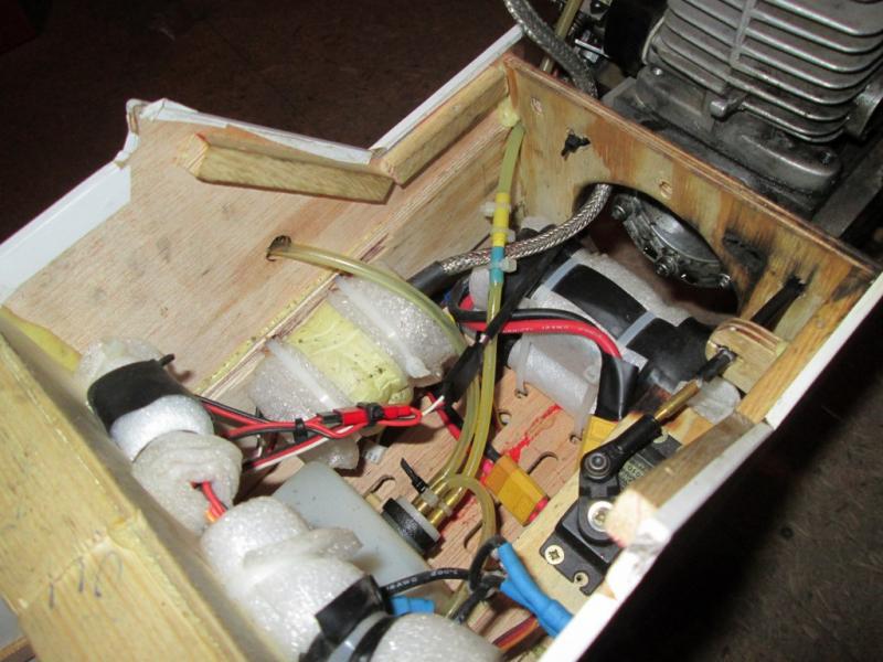 Tak serwa bezpośrednio do odbiornika odbiornik assan zasilanie bezpośrednio 2 cele fife serwa po 12 kg za duże ale takie miałem.Mój wydech zamulał mi silnik jakaś dziwna konstrukcja a zwykłej puszki nie chciało mi się robić.Pionowy jest na kanapkę styro balsa a poziomy zmieniłem na kratownice na zdjęciu widać kanapkę ale jest kratownica.Wyważenie i łatwość podłączenie teraz bym dodał z 5 cm z przodu i było by trochę luzniej z gratami ale mimo to i tak wszystko dało się wyważyć.