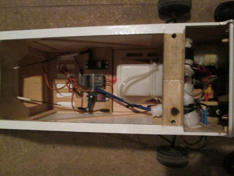 Za bardzo nie ma gdzie tego już przesunąć serwo kierunku już cofnięte odbiornik też tyłu wszystko blokuje mechanizm podwozia przez co nie mogę cofnąć dalej aku,można by było jeszcze cofnąć ku tyłkowi regulator ale ile on waży? chyba nie warte zachodu zresztą doszły by dłuższe długości kabli i wyszło by na to samo.Zobaczę po oblocie i zastanowie się nad mniejszej pojemności akumulatorami albo dwie cele przesunę za dzwigar a 4 zostaną przed podwoziem.