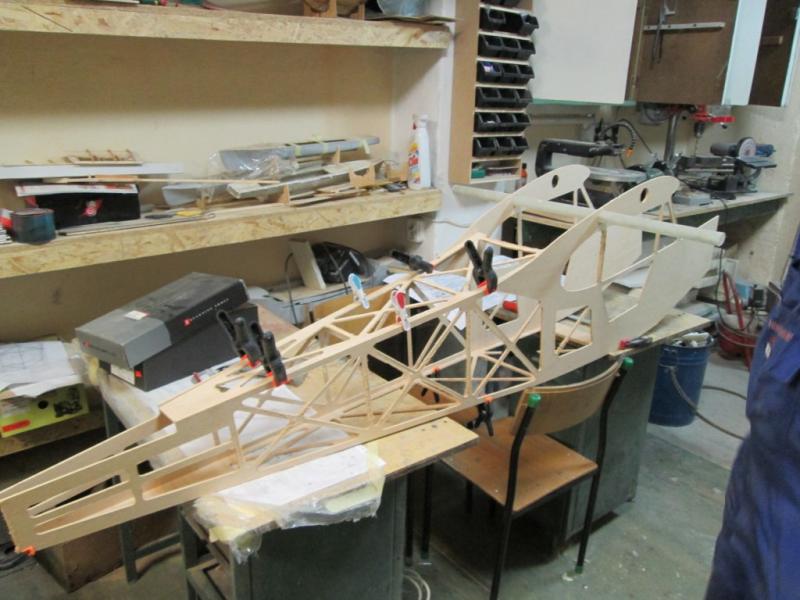 Kadłub został sklejony jeszcze na dziobie trzeba popracować i zostały wycięte nie wszystkie żeberka na skrzydła
