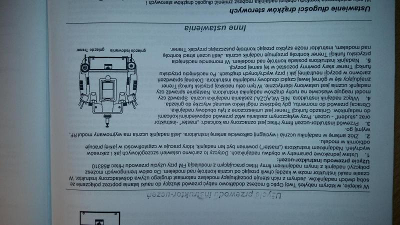 3. Napisałem Ci na priv. Jeżeli chcesz połączyć dwa nadajniki kablem, to do tego który ma być trenerem wsuwasz wtyczkę kabla oznaczoną "Master". Do nadajnika ucznia wsuwasz wtyczkę oznaczoną "Student" (takie oznaczenia występują w oryginalnym kablu). W nadajniku trenera włączasz zasilanie, Jeżeli w nadajniku trenera trzymasz podniesioną do góry dźwignię oznaczoną napisem "TRAINER" to z nadajnika ucznia możesz sterować modelem. Wystarczy że ją zwolnisz i znów przejmujesz sterowanie.