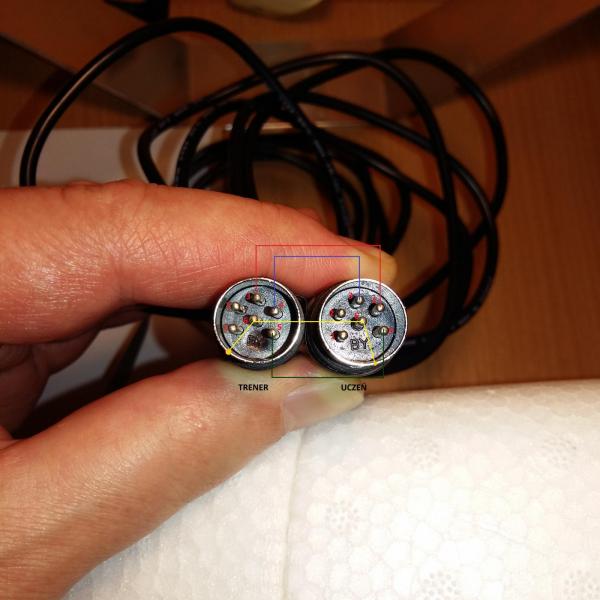 4. W załącznikach fragment instrukcji traktujący o użyciu kabla trener - uczeń oraz na szybko zrobiony rysunek połączeń w kablu. Numeracja pinów we wtyczkach nie jest zgodna ze standardem, to moja własna inwencja .​ Nie wiem dlaczego, ale jakkolwiek bym nie zapisał zdjęcia fragmentu instrukcji, to po wrzuceniu na forum zawsze jest do góry nogami .