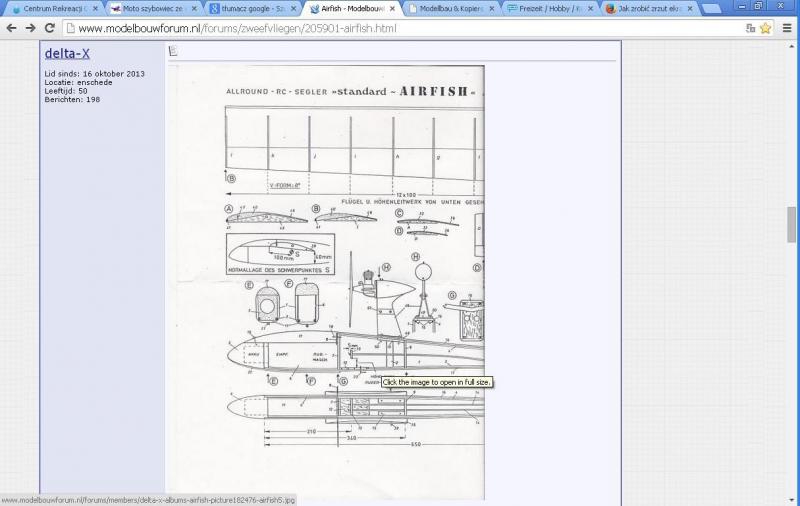 Witku śladów napraw nie ma a w ogonie były ołowiane kulki więc to też troszkę dziwne jutro postaram się to pomierzyć o co pytasz, na zboże to troszkę trzeba będzie poczekać pogoda teraz do niczego, trochę znalazłem w tym wątku . http://www.modelbouwforum.nl/forums/zweefvliegen/205901-airfish.html