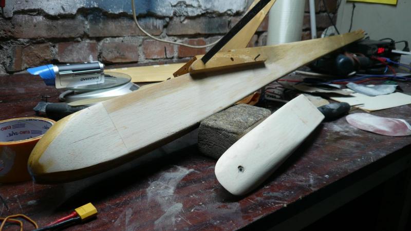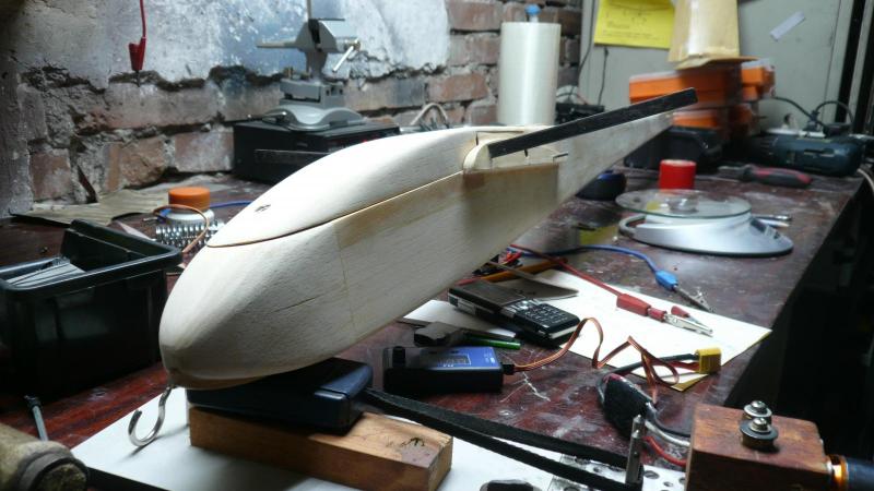 Witku tak właśnie będzie jak piszesz jak najmniej zmian i tak sobie myślę ze śmigło drewniane też by fajnie wyglądało, tylko nie mam pomysłu na kształt wieży może taka prosta pionowa obudowana balsą w opływowym kształcie... Efekt dzisiejszych prac: