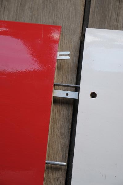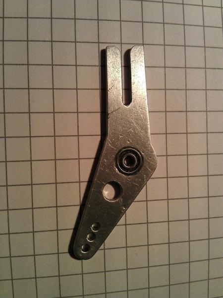 Heh - model jest dość wiekowy chyba druga połowa lat 80 - tak to nie pomyłka. W uchu jest lotka, a ta dźwignia służy za przekazanie napędu do niej, wtedy było ciężko o serwa dlatego w tym modelu napęd do lotek był zrealizowany na jednym centralnym serwie, i rozprowadzony bowdenami. W tym wykonaniu lotka bezszczelinowa. Poniżej napęd serw w centropłacie i widok końcówki zmontowanej z centropłatem. I sama dźwignia. Kojani