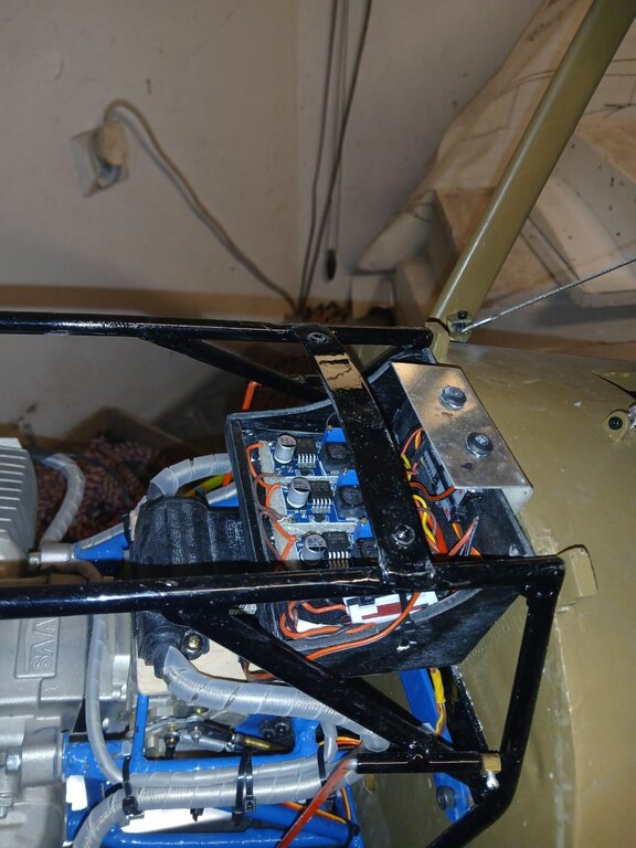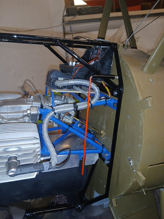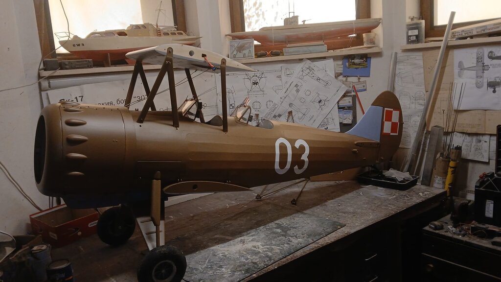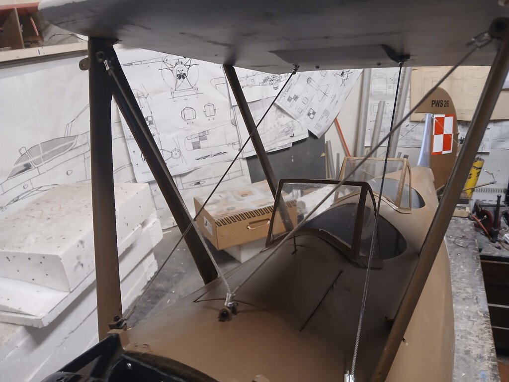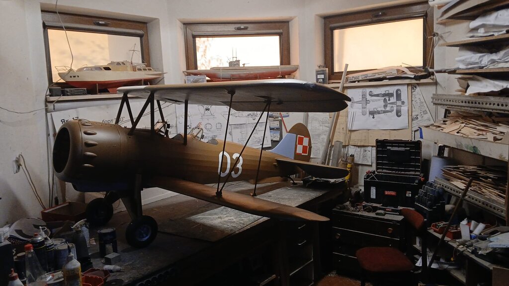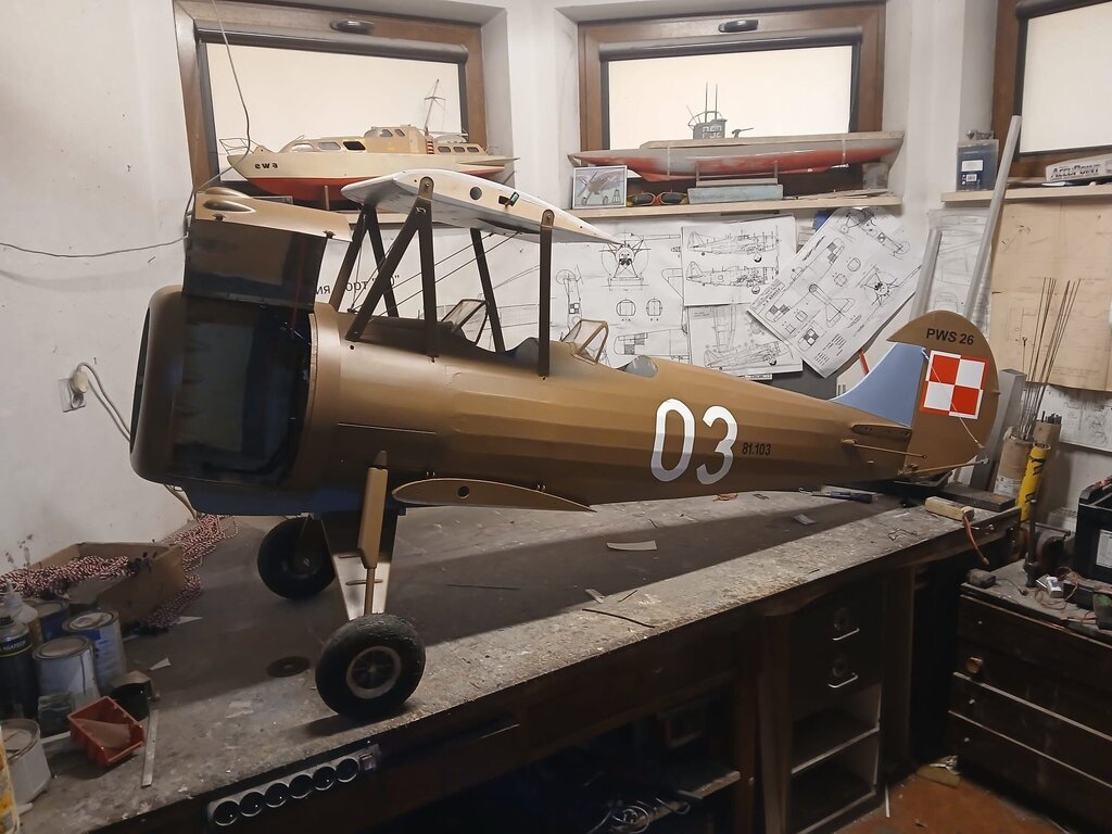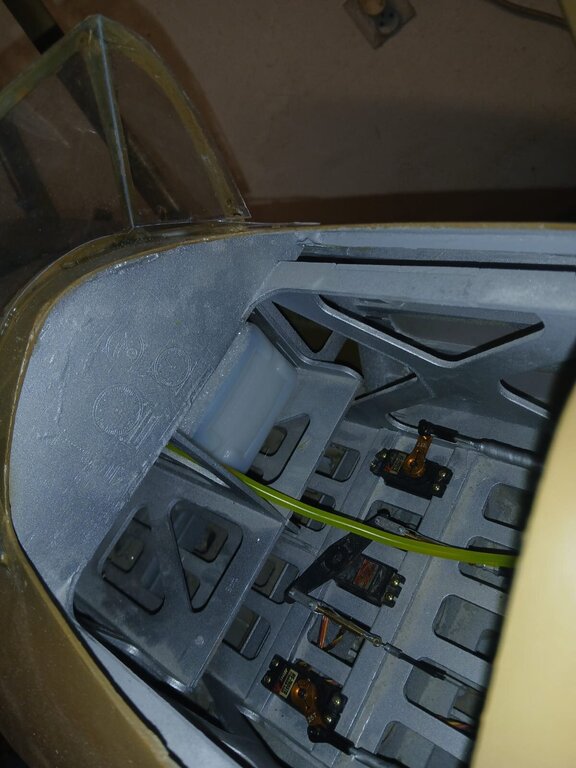 Witam Finisz budowy modelu jest fajny bo widać efekty ,ale ten model chce mnie wykończyć . Wielki jak stodoła a w środku miejsca jak w króliczej norze ,ciasno i jeszcze raz ciasno. Zamontowałem jeden zbiornik paliwa o pojemności 1L ( będą dwa ) z możliwością połączenia instalacji na 1L lub 2L zamontowałem silnik na gotowo i ogarnąłem komorę silnika . wyprowadziłem diody kontrolne z kil switcha i aparatu zapłonowego oraz skończyłem instalacje w komorze silnika Pilot z ZUCH-a przymierzył się czy pasuje . ale wątpiąc w jego umiejętności ogarnąłem mu ochraniacze . CDN